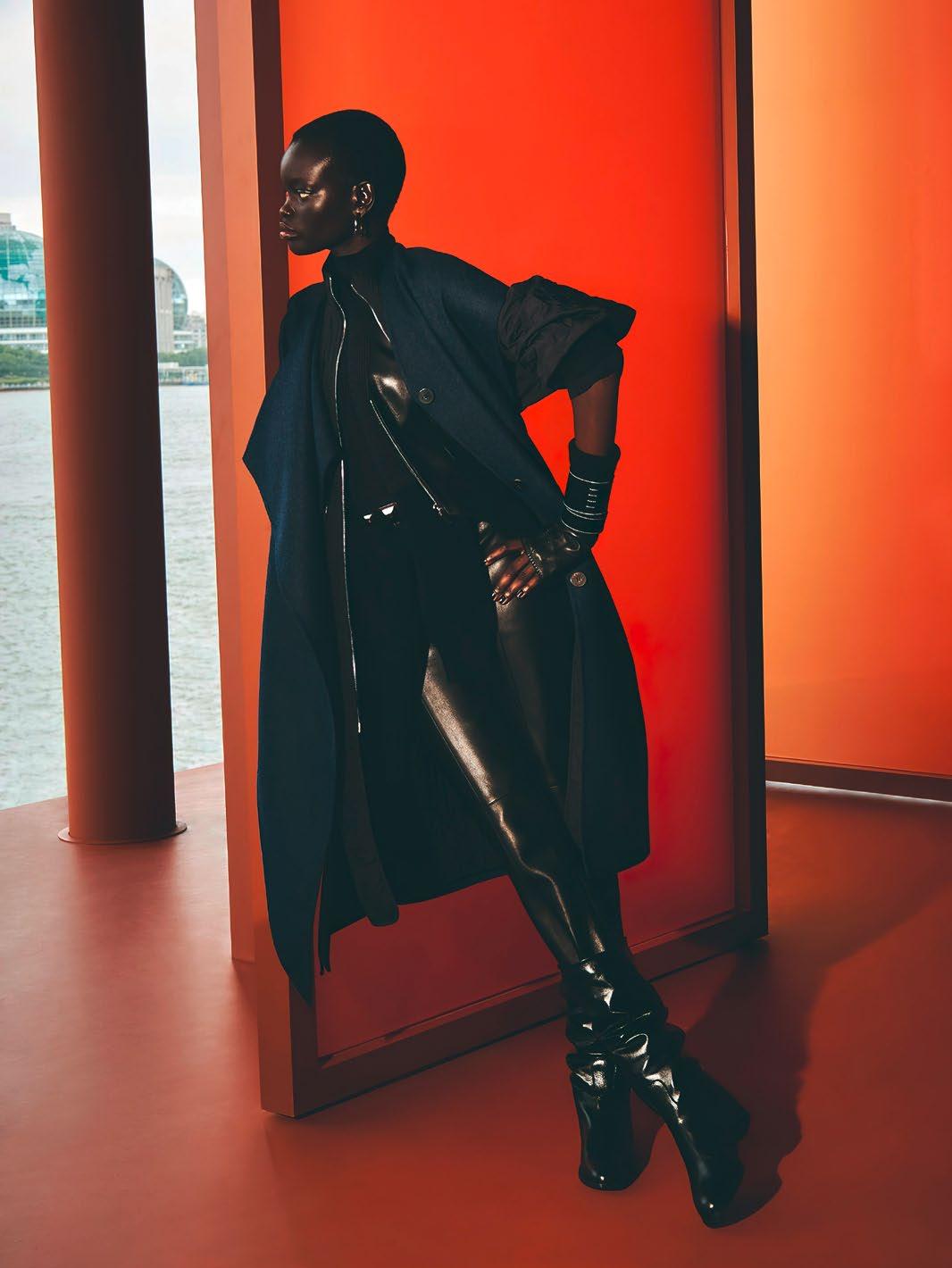 Top und Hose von CHAMBRE DE FAN. Jacke und Schuhe von CELINE. Hut von GUILLAUME LARQUEMAIN.