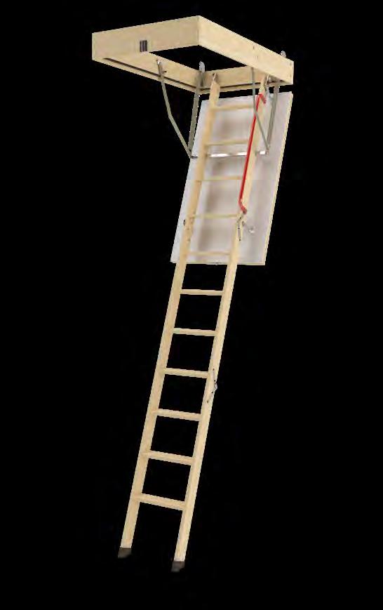 De houten ladderdelen zijn licht in gewicht en eenvoudig in te klappen. Bij gesloten stand liggen de trapdelen op het zolderluik. De speciale toegepaste constructie zorgt voor een maximale trapsterkte.