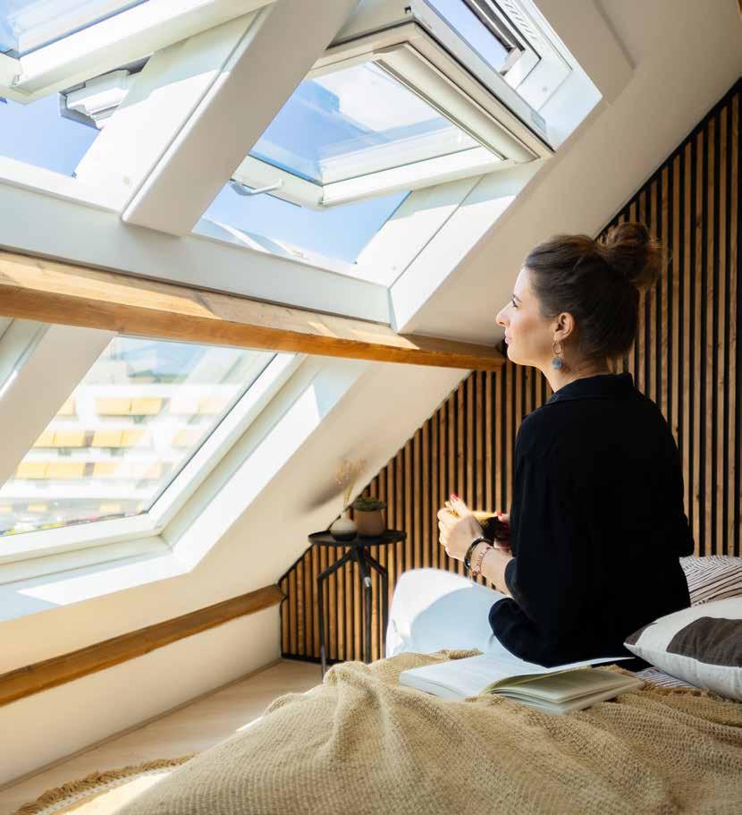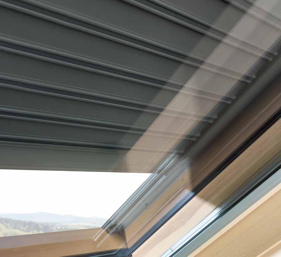 De buitenzonwering van FAKRO biedt een optimale bescherming tegen oververhitting van de ruimte. Deze reflecteert het zonlicht voordat het glas bereikt wordt en biedt zo bescherming tegen opwarming op zonnige dagen.
