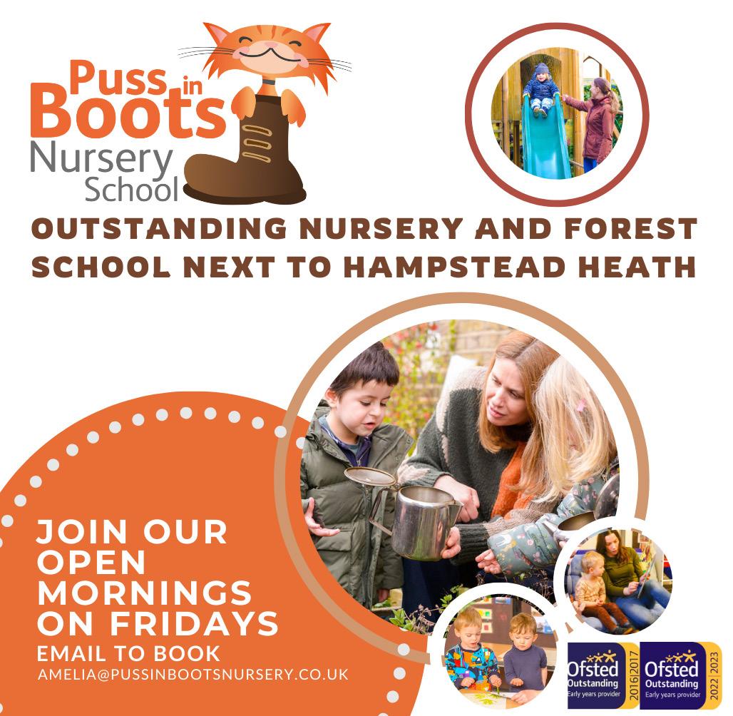 Our happy, nurturing environment and forest school for children aged 2-4 is nestled on the south west tip of Hampstead Heath. Ofsted Outstanding for 8 years. Our dedicated team is passionate about early years education but don’t take our word for it, or Ofsted’s. See our testimonials and join our Open Mornings on Fridays. To book email amelia@pussinbootsnursery.co.uk 0207 267 2181 www.pussinbootsnursery.co.uk