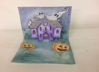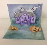 Step 8: Glue the house onto this step and stick the card with the pumpkins in front of the house.