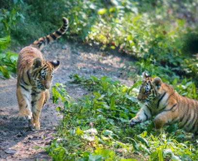 The Amur tiger cubs, whose names are Zuzaan and Soba, were born at the end of April.