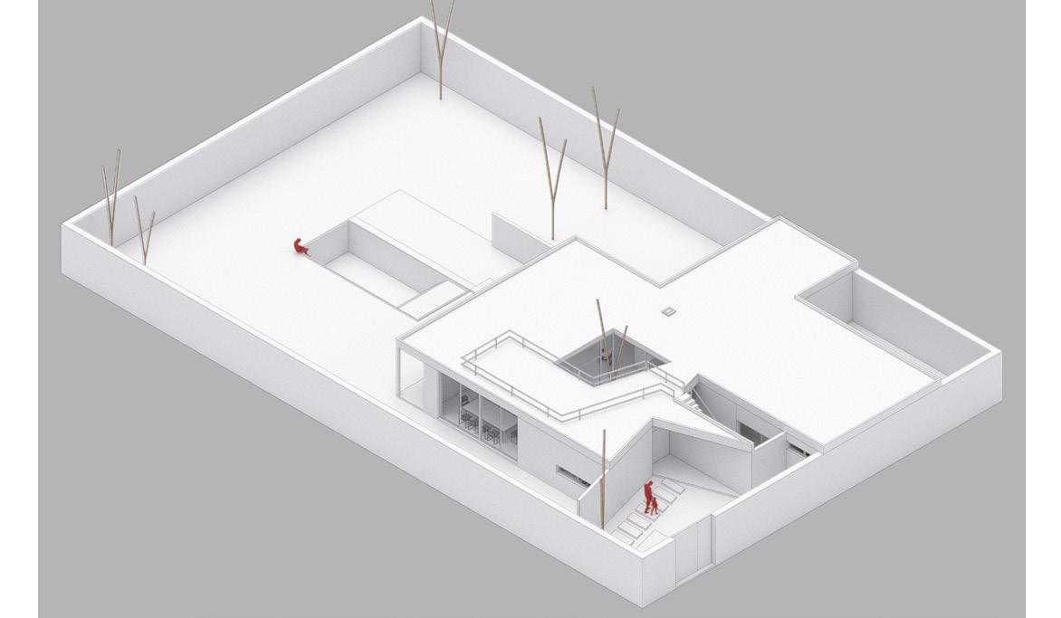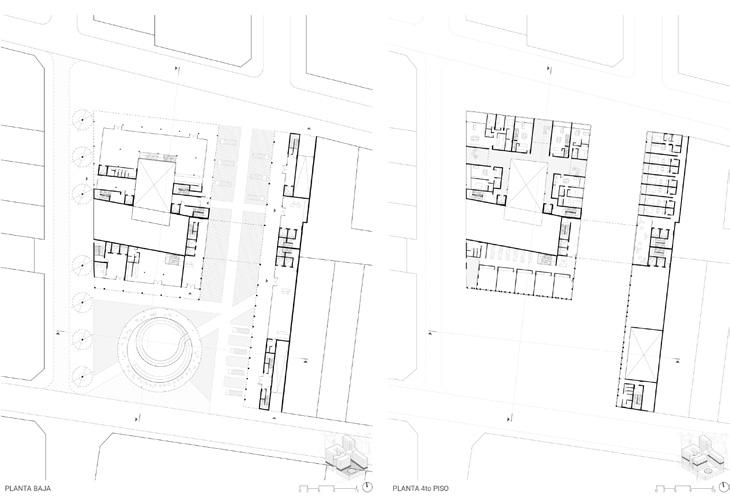 El edificio propone como pulmón verde para el barrio. Conservando la vegetación existente en un patio central que asegura condiciones de asoleamiento, vegetación e iluminación natural al interior de los espacios y los nuevos diseños propuestos a partir del PRFV se aplican a modo de "pieles" capaces de reducir la carga energética (cubierta verde, muero vegetal y fachada ventilada).