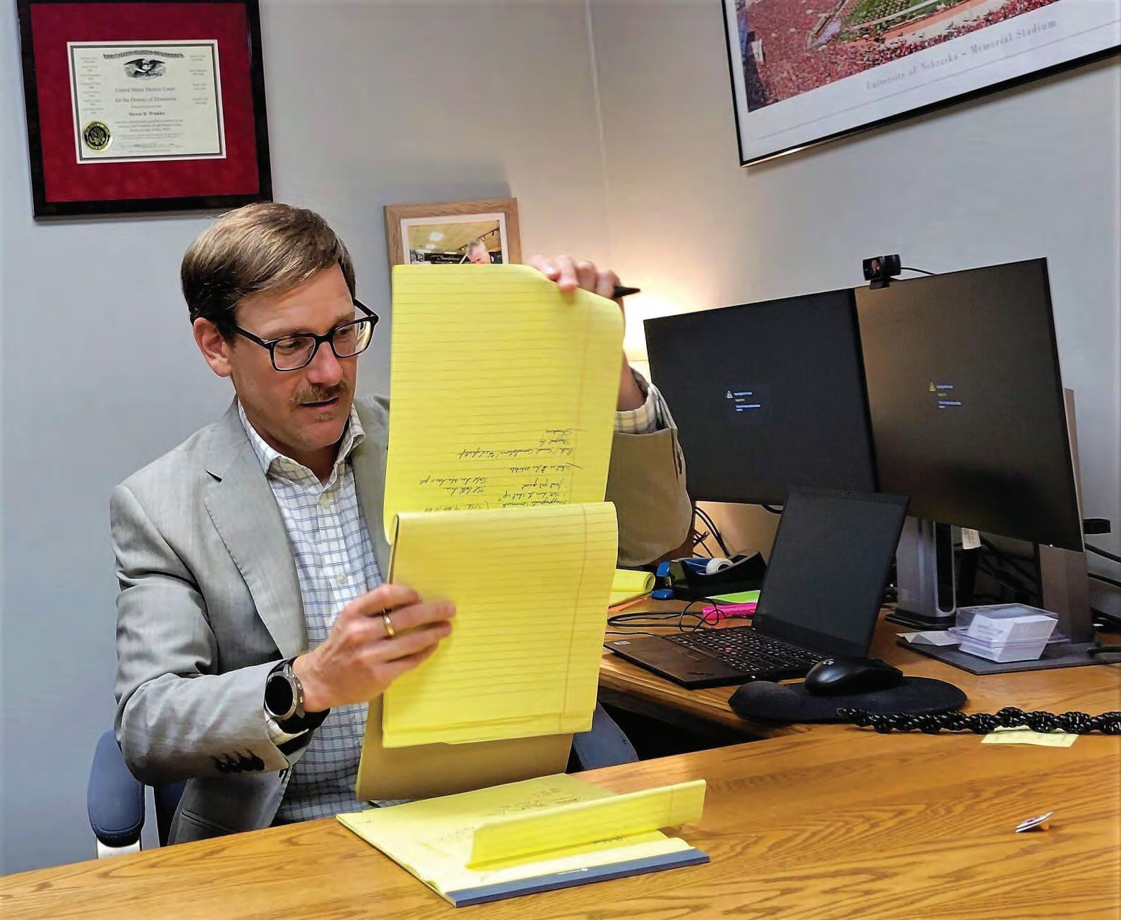 Steve Winkler goes through notes in his office at Brandt and Winkler, PA, in St. Peter. (Photos by Pat Beck/southernminn.com)