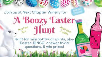 New Prague. An afternoon of boozy surprises, springtime games, and delicious drinks for 21+. This ticketed event grants access to the Barrel Room, Vineyard, and Pavilion, where mini bottles of flavored vodka are hidden throughout the grounds and spring games abound. Keep an eye out for Easter Eggs (limit 1 per person) which contain extra prizes like a free drink, discounts on wine, or exclusive winery merch. There will also be Easter Bingo, spring trivia, game day grub and photo ops. Tickets online.