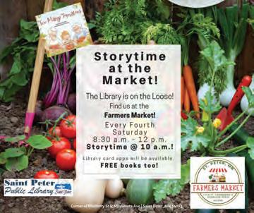 Library at the Market - St. Peter-- 8:30 a.m.-12 p.m., St. Peter Food Co-op, 228 W Mulberry St. Free books and information from the St. Peter Library at the Farmers Market. Storytime at 10 a.m.