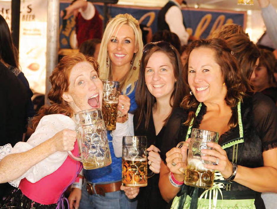 authentic German themed clothing and gifts during the festival. A variety of Oktoberfest beers from around the world will be on tap over the weekend and the schedule will also feature a sauerkraut eating contest, stein holding competition, best dressed lederhosen and dirndl contest and a 0.1K “non-run” fun run.