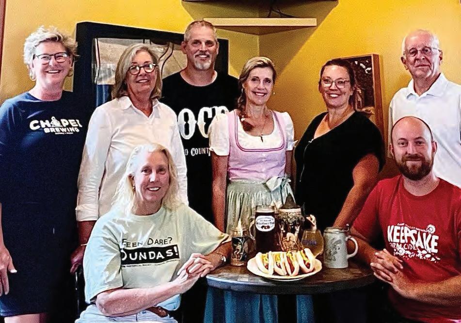 Members of the Dundas Oktoberfest organizing committee include, front row, Michelle Millenacker and Nate Watters (owner of Keepsake Cidery). Back row includes Tracie Vranich (owner, Chapel Brewing), Jenelle Teppen (city administrator, city of Dundas), Jeff Sartor, Penny Bonsell (pastor, Little Prairie Church), Caitlyn Otis and Lee Skaar. Not pictured are Brianna Lane and Greg Lane, owners of Farmstead Outdoor Adventures, Tom Hollenhorst (member, Bavarian Musikmeisters), Steve Schmidt (owner, Chapel Brewing). (Photo courtesy of Chapel Brewing)