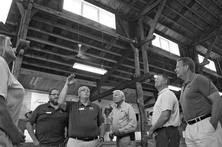 SCFF Treasurer Tim Arlt (third from left) explains the the Owatonna Foundation trustees how the new windows were installed in the impact they had on the Great Outdoors Center. The fair utilized a foundation grant to make the update happen. (Annie Harman/ southernminn.com)