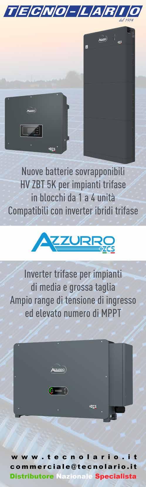 collaborato: Aldo Cattaneo, Marta Maggioni, Monica Viganò Editore: Editoriale Farlastrada srl Stampa: Ingraph - Seregno (Mi) Redazione: Via Martiri della Libertà, 28 20833 Giussano (MB) Tel: 0362/332160 - Fax 0362/282532 info@solareb2b.it www. solareb2b.it Impaginazione grafica: Ivan Iannacci Responsabile dati: Marco Arosio Via Martiri della Libertà, 28 20833 Giussano (MI) Solare B2B: periodico mensile Anno XIV n.3 - Marzo 2024 Registrazione al Tribunale di Milano n. 195 del 2 aprile 2010. Poste Italiane SpA - Spediz. in Abb. Postale D.L. 353/2003 (Conv. in Legge 27/02/2004 n°46) Art.1 Comma 1 D.C.B. Milano - L’editore