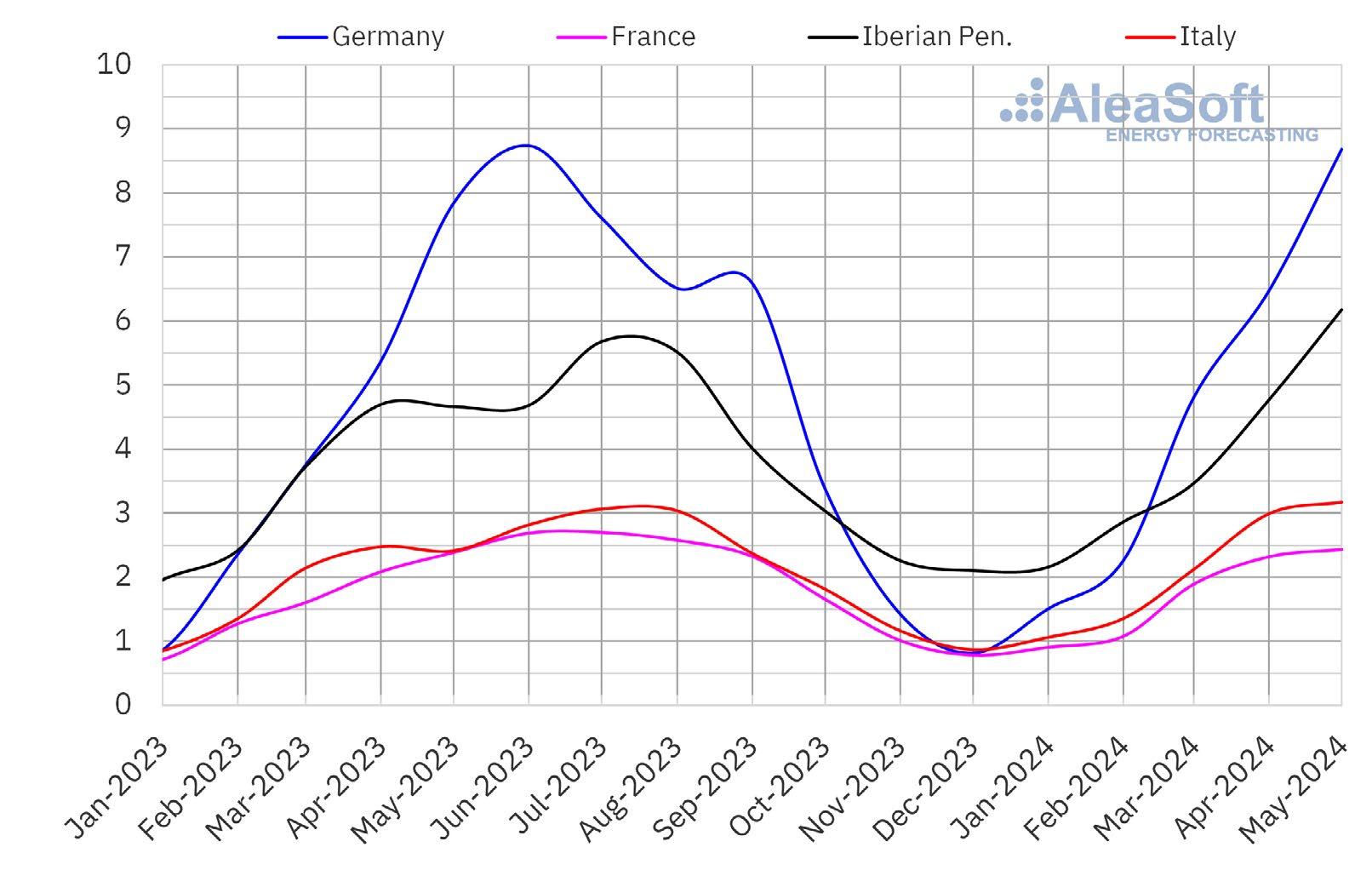 Lo dimostra ad esempio la crescita record delle energie rinnovabili nel mix elettrico italiano dello scorso maggio. In quel mese il fotovoltaico ha coperto una fetta del 18,9% (era del 14,6% un anno fa). Negli ultimi dodici mesi la produzione da fotovoltaico in Italia è aumentata del 17,3% sul periodo precedente. E sempre nel mese di maggio sono stati allacciati nuovi impianti per 601 MW, il terzo miglior risultato mensile degli ultimi dieci anni.