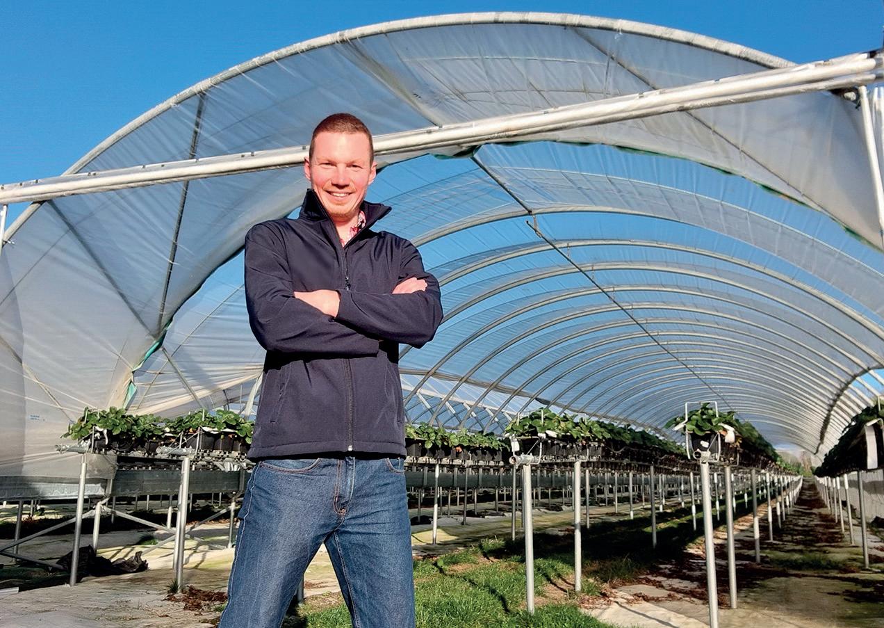 Dan Hawes grew up on an arable farm in Suffolk and now produces strawberry and raspberry plants for the UK fruit market with Blaise Plants, sister company to Hugh Lowe Farms, Kent. The business grows outside, under tunnels and in glasshouses and produces more than four million plants a year. The arable side includes environmental schemes, with a mix of wheat, oilseed rape, beans and barley crops.