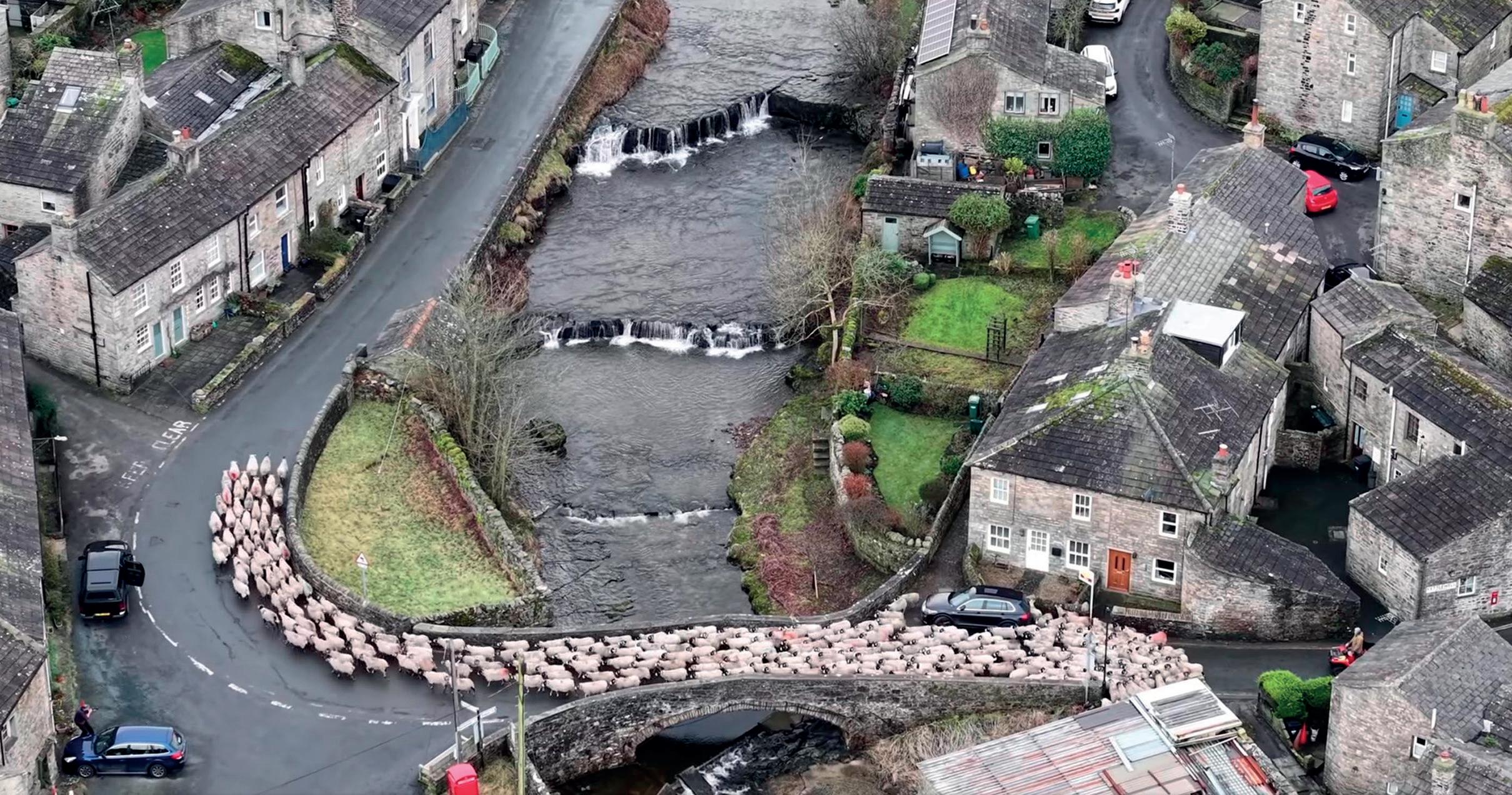 MORE than 200 sheep were herded through the streets of Hawes in North Yorkshire, with the farmer and his dog expertly leading the Swaledales through the narrow lanes in the village.