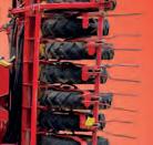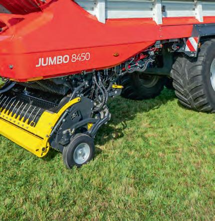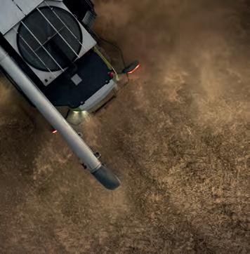 with a straight-line power ow. The innovative drive operates with two longitudinal ywheels, each at 1,650rpm, which store considerable energy to ensure uniform compaction. Power transfer is handled solely through e cient, low-loss, and wear-resistant enclosed gearboxes, in addition to two power belts. Sensors in the rotor or rake gear continuously monitor gear loads and automatically adjust assistance systems, such as AI-assisted press density control and bale length regulation.