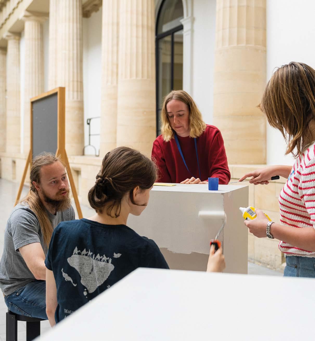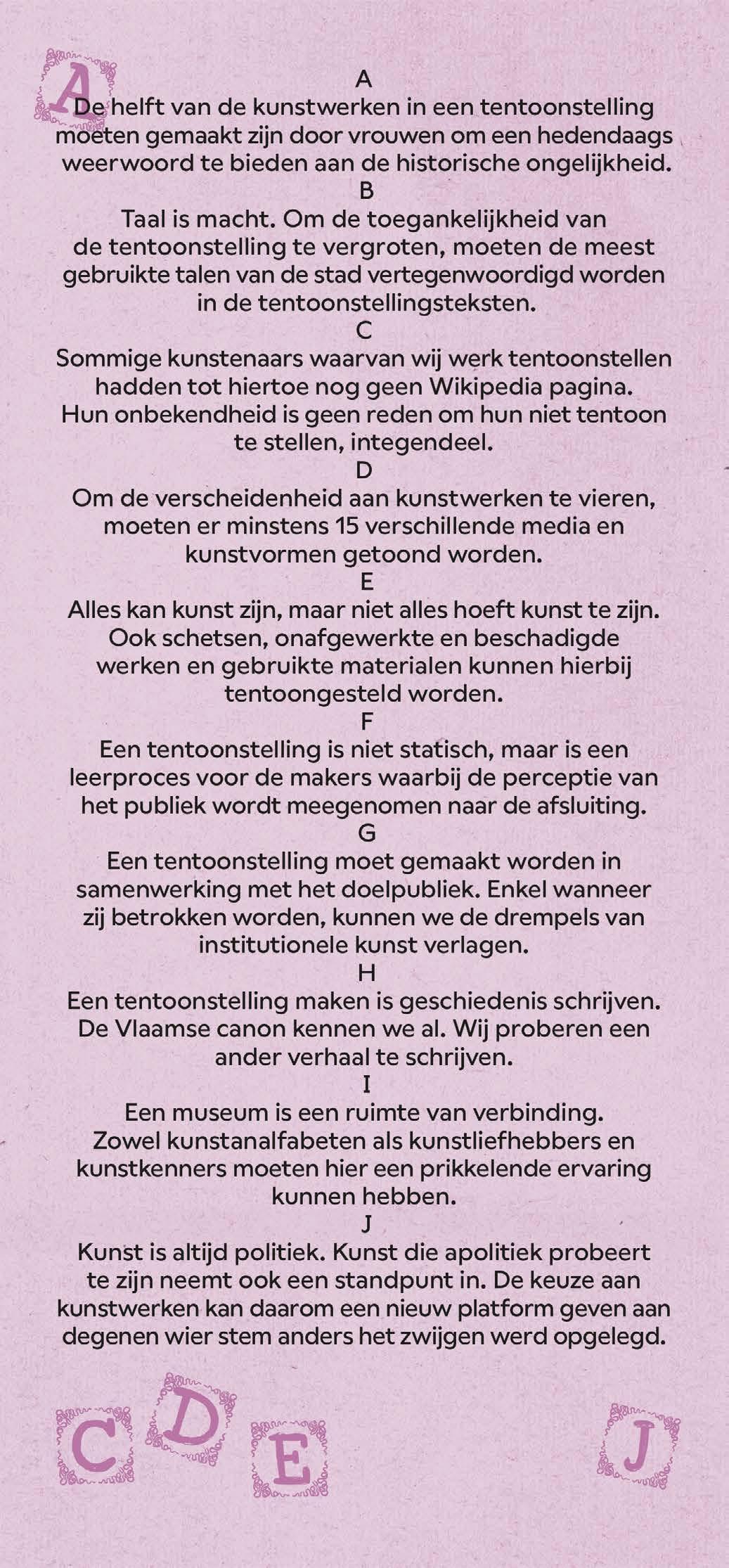 Openen doet Abby met een eigenzinnige kunstinstallatie van Rinus Van de Velde en met de openingsexpo F**klore. Reinventing Tradition. Daarin worden traditionele gebruiken, ambachten en narratieven met liefde, milde ironie en een open blik herdacht, in kunstwerken die variëren van wandtapijten en zandsculpturen tot installaties rond vinkenzetting en processies.