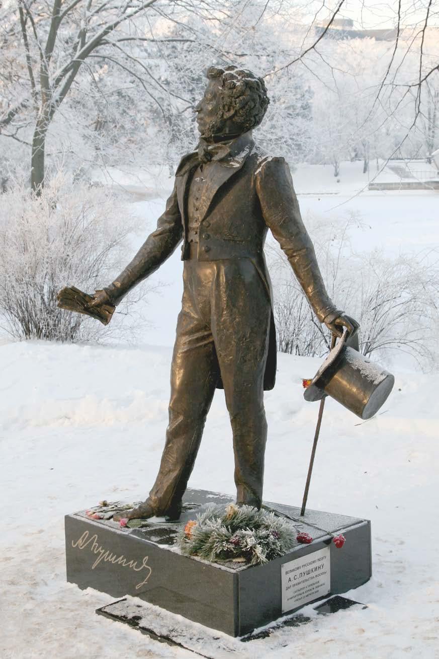 Het ondertussen reeds verwijderde beeld van Aleksandr Poesjkin in Riga.