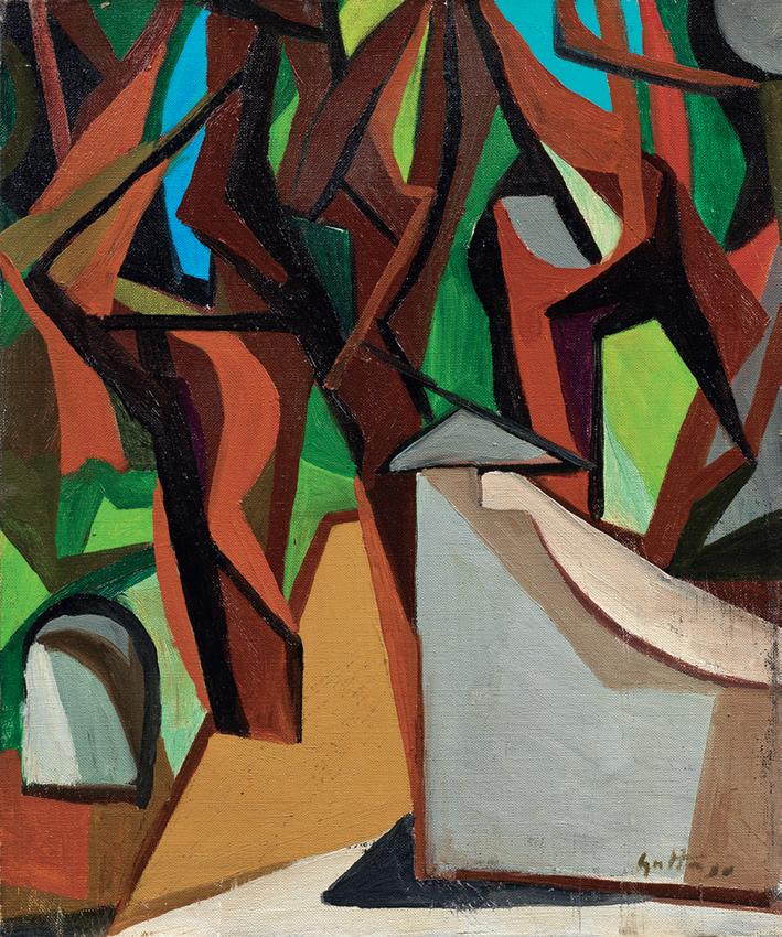 Lacca e colore metallico su tela, montata su pannello di legno, con allegato un rilievo in legno dipinto. 128,5 x 95,2 cm. Asta 30 maggio. Stima: € 1,2–1,5 m