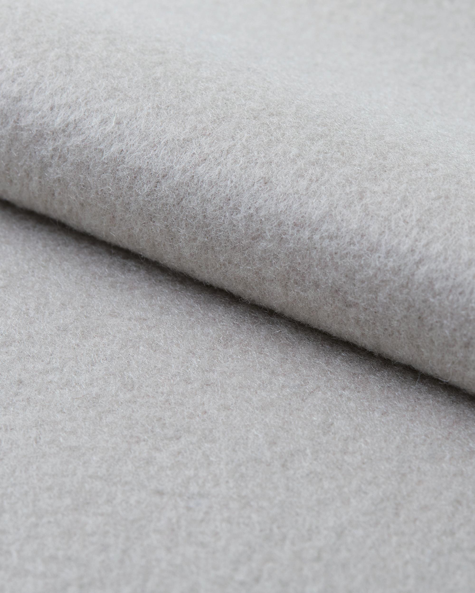 In 86% lana e 14% seta con trattamento natural bi-stretch, il tessuto di mano piacevole e fluida per abito si distingue grazie a un micro-effetto “puntaspillo”, enfatizzato dal diverso assorbimento del colore da parte delle due fibre. La palette si sviluppa sui toni del grigio, blu avio, verde salvia e su marroni caldi e freddi.