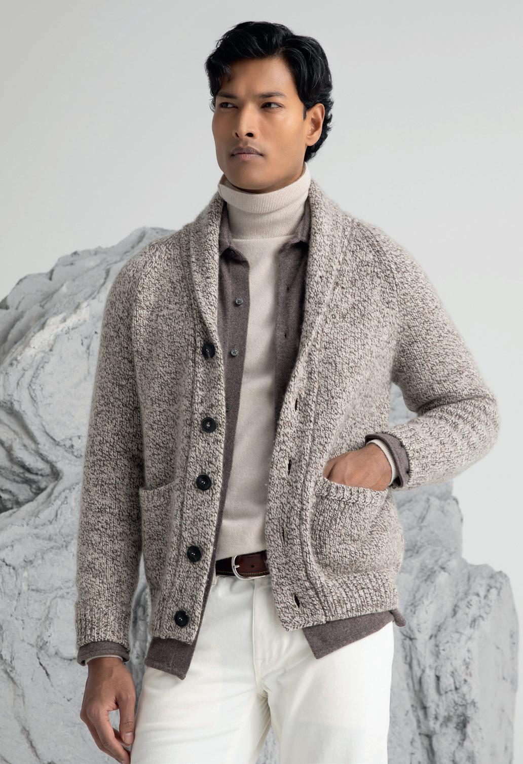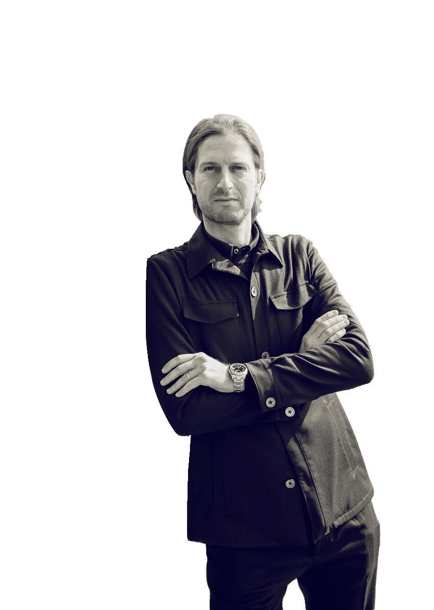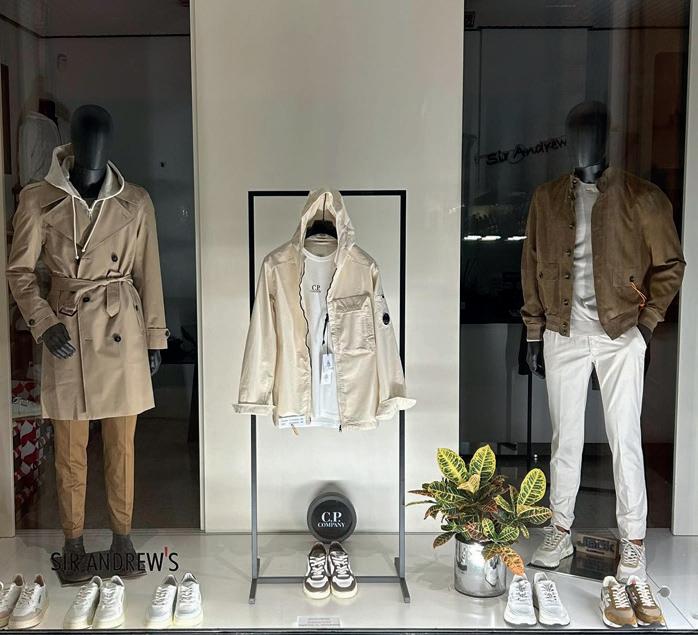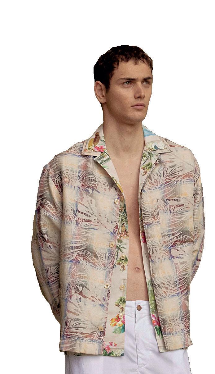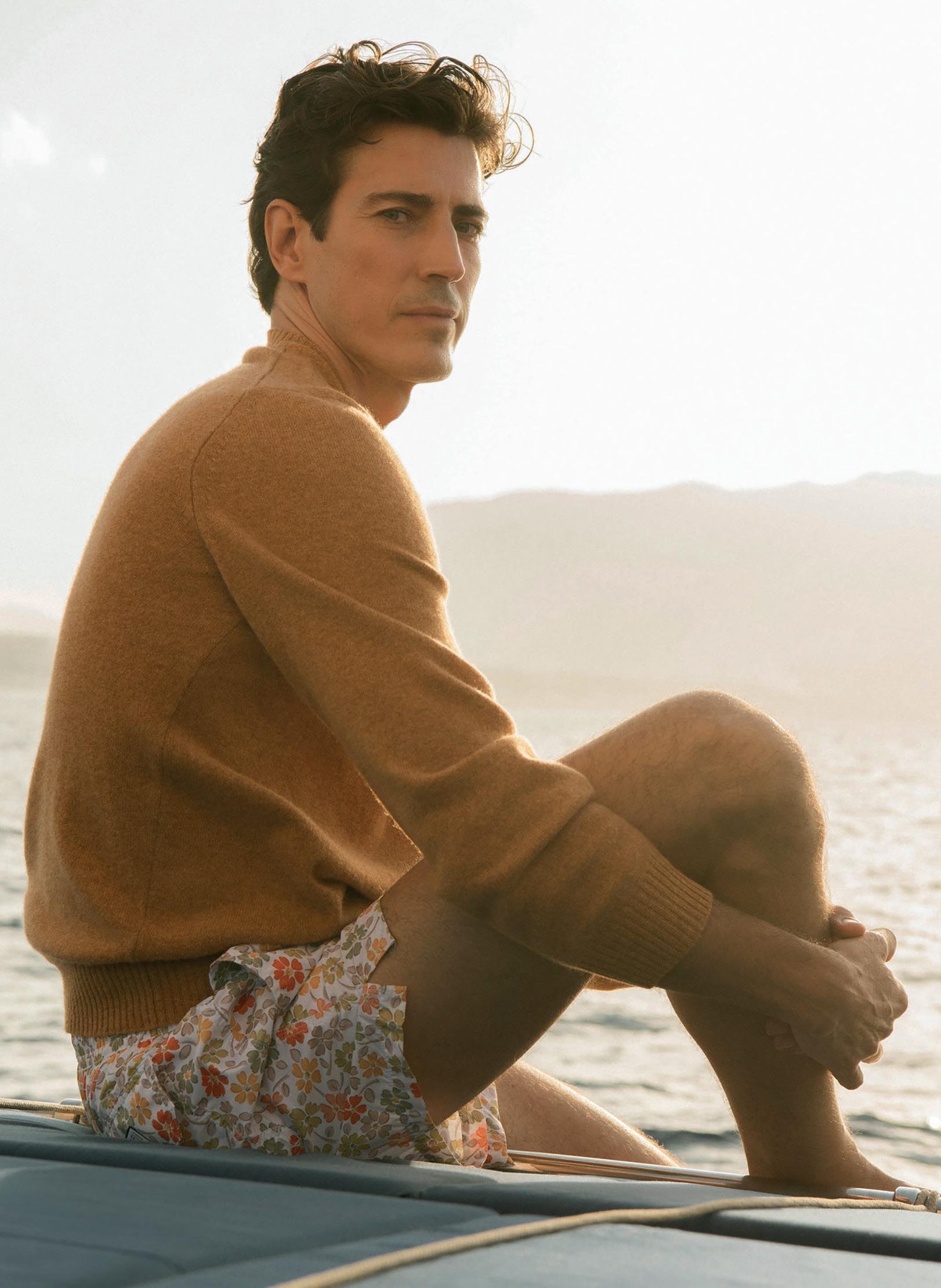 DI ANGELA TOVAZZINella pagina accanto, un ritratto di Andrea Dini, ceo della Dama, proprietaria del brand Paul & Shark, e terza generazione della famiglia. Capostipite fu Gian Ludovico Dini: il 4 marzo 1957 il Maglificio Dacò, fondato nel 1921, riprese le attività grazie al suo intervento. Nei primi anni Settanta Paolo Dini, il figlio maggiore di Gian Ludovico, durante un suo viaggio nel Maine si trovò per caso nel cortile di un velificio e il suo sguardo cadde su una vecchia vela da lavoro, che riportava la scritta "Paul & Shark". Da lì ebbe inizio l'avventura. In questa pagina, due immagini della collezione Riviera di Paul & Shark per la Fall-Winter 2024/2025