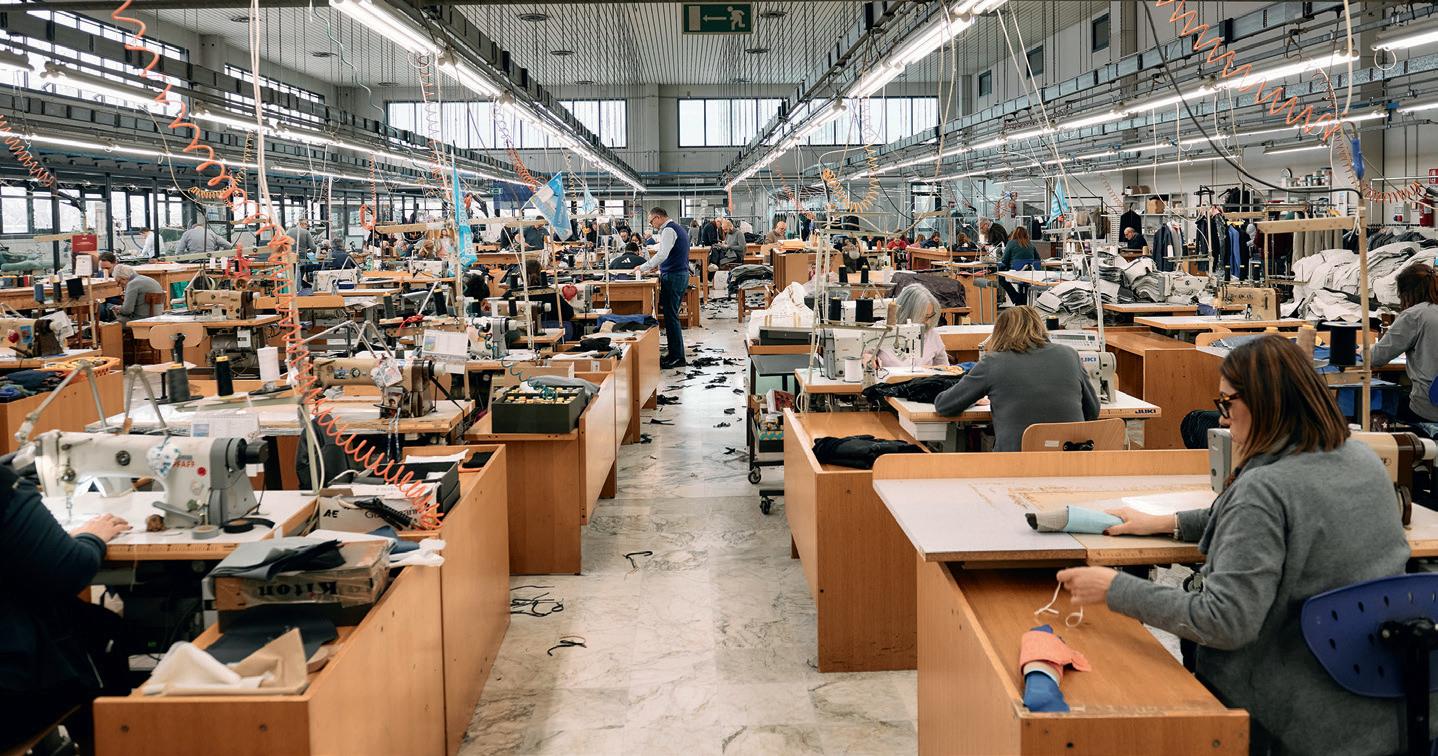 tutte di nostra proprietà e questo ci garantisce l’altissimo standard qualitativo dei manufatti, la possibilità di sperimentare, che è sempre più importante, e di consegnare bene ai nostri clienti». Anche i tessuti provengono per la maggior parte dal Lanificio Carlo Barbera, acquisito nel 2008, dove si studiano tipologie e disegnature esclusive: «Siamo l’unico marchio della moda che ha costruito una filiera con un processo inverso rispetto ad altri player, partendo dal prodotto finito per arrivare alla materia prima».