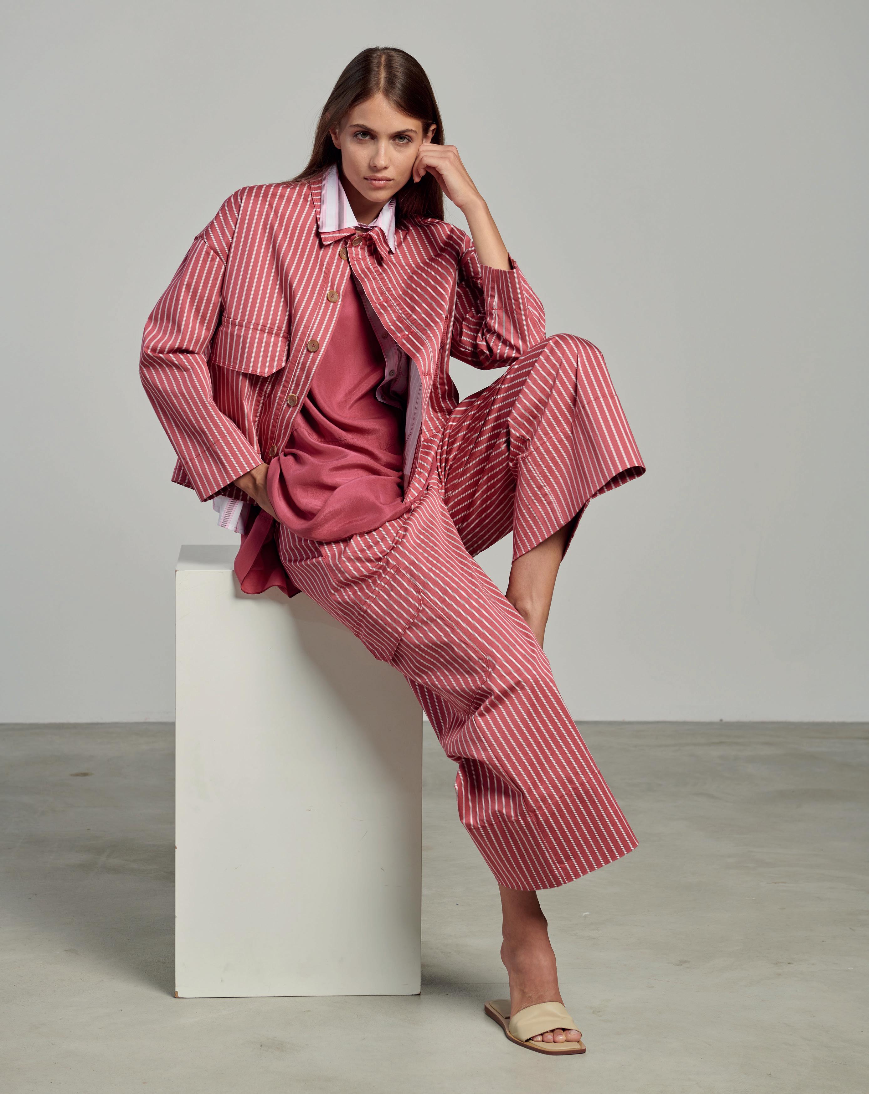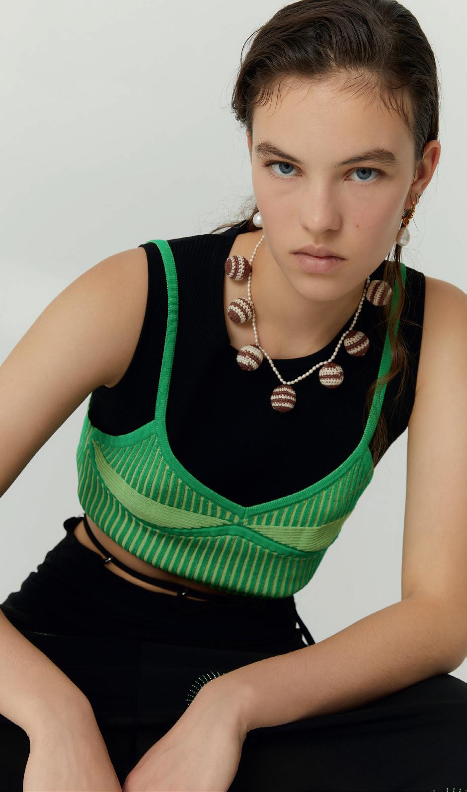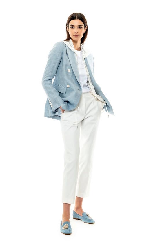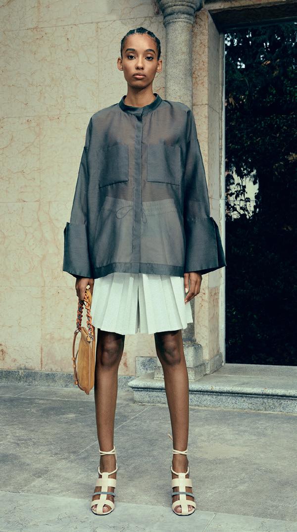 come la maglieria e il lino, ma lo abbiamo fatto in maniera moderna, con attenzione alle vesitibilità. Il risultato è una collezione di capi espressivi, capaci di esprimere lo stato d’animo di chi li indossa. Dalla SS23 riporteremo in primo piano settori merceologici che si erano un po’ persi, come il menswear e soprattutto gli accessori, che saranno iconici e riconosci bili. Questo darà riconoscibilità e freschezza al brand. Sappiamo quanto per le giovani gene razioni l’accessorio, e in particolare borse e zai ni, sia determinante e per questo amplieremo la nostra offerta in quest'ambito.