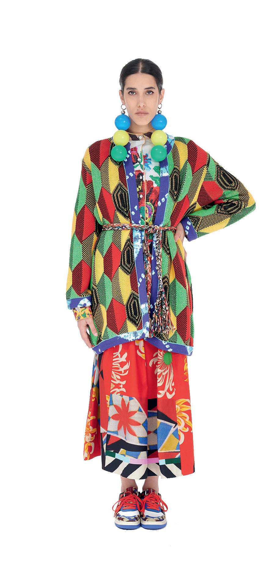 La femminilità incontra costruzioni contemporanee, rimanendo ancorata al passato attraverso lavorazioni manuali dal sapore familiare: una tendenza che viene elaborata nel lato più giocoso della maglieria multicolore.