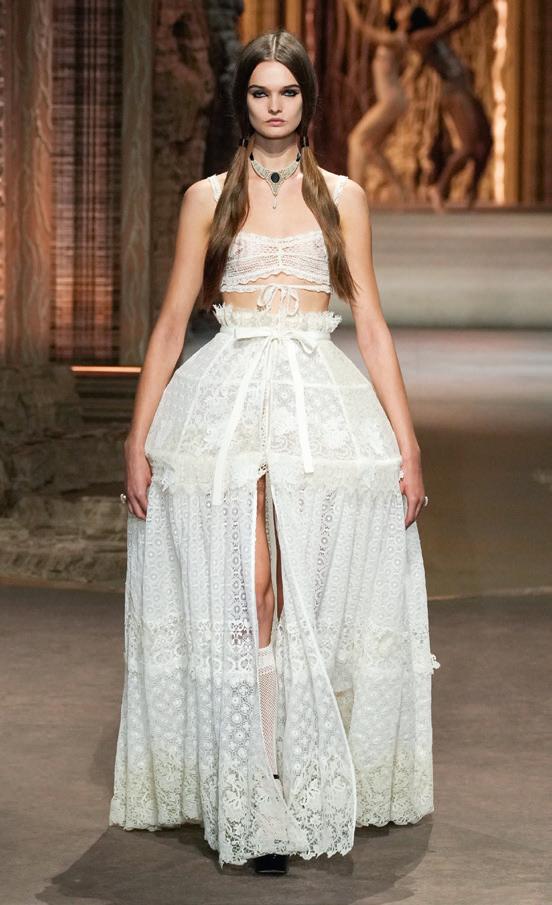 La genialità di Maria Grazia Chiuri risiede nella sua grande ricerca progettuale. L’antico ritorna alla ribalta con busti, guêpière e decori rinascimentali.