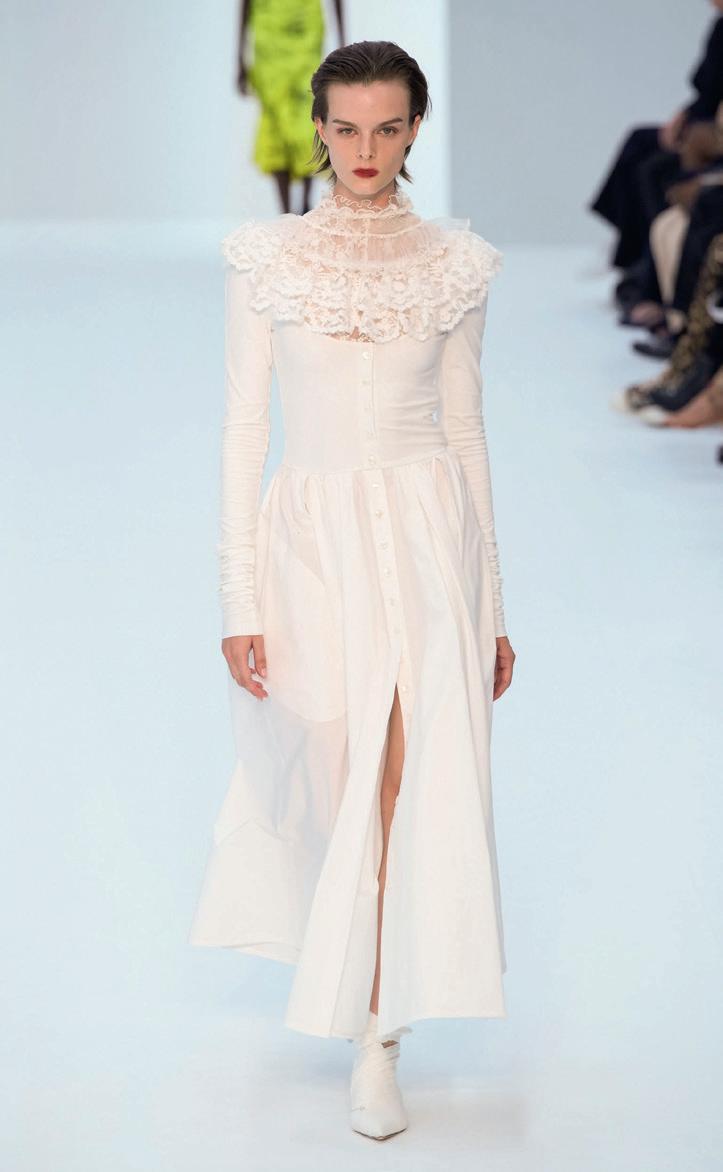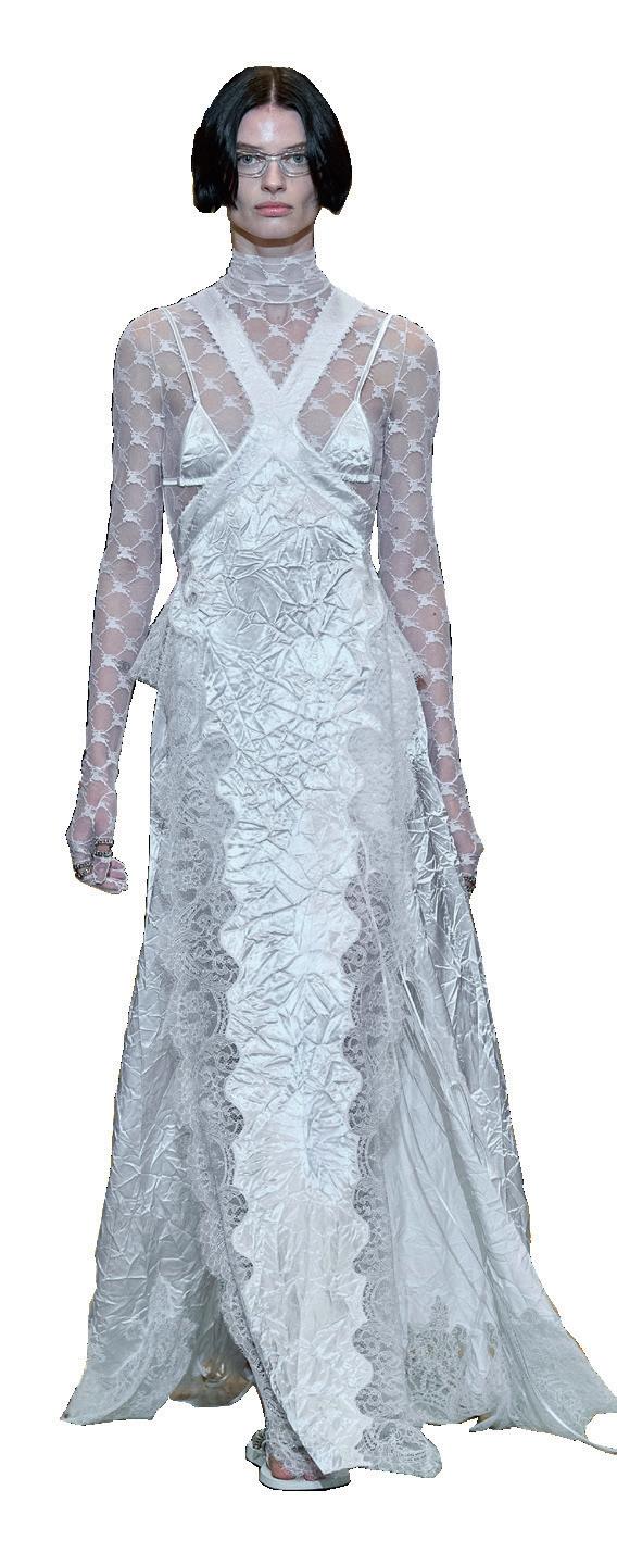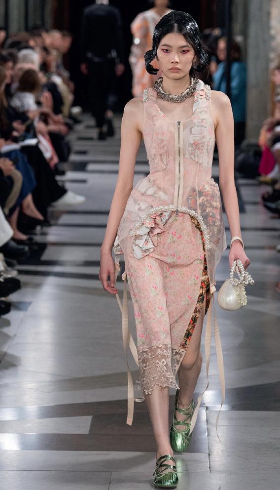 Assemblaggi vestimentari colorano gli spazi della contemporaneità, guardando al Rinascimento. Le fogge, simili a quelli delle corti di un tempo, riportano in auge il busto, la guêpière e il savoir-faire dei ricami.
