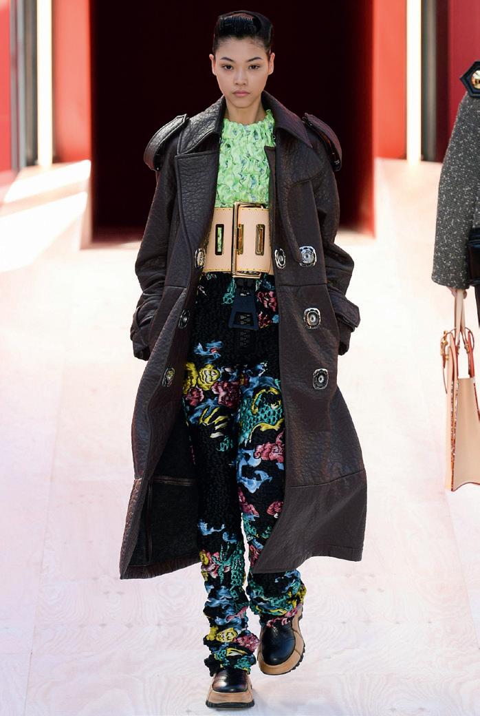 Matthieu Blazy crea giacche perdono i revers, trench che si gonfiano e abiti che nascondono le frange o fiori scomposti e irregolari, che regalano movimento.