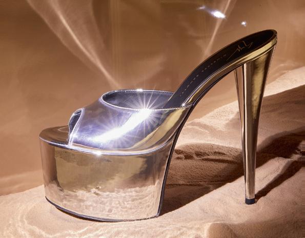 Un revival dei momenti iconici della moda rivisti alla luce abbagliante degli strass, tra sofisticati tacchi, piume e denim, per avvolgere il piede in un elegante abbraccio.
