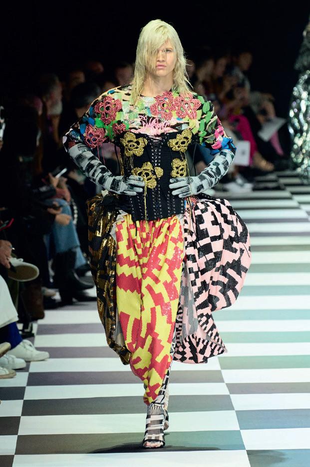I designer danno sfogo a uno sfrenato sfolgorio di lamé e ricami stile Nudie Suit. Oltre alle paillettes c’è una raffinata sartorialità, fatta da tailleur pantalone in colori accesi e bomber dai riverberi metallici.