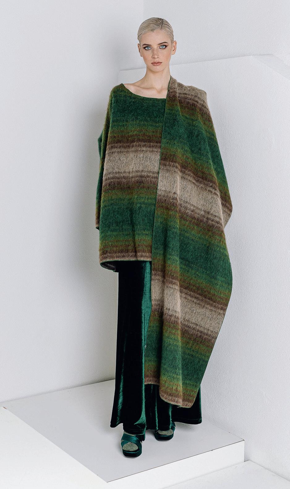 Grazie anche alla collaborazione con l’azienda comasca Olmar & Mirta… Questa è la seconda collezione prodotta su licenza dalla famiglia Tirelli. Insieme stiamo adattando la collezione alle esigenze del mercato…e del clima. Accanto all’eco-fur abbiamo introdotto la maglieria in cashmere e lana, riciclati rispettivamente al 95% e al 5%, movimentata da pelliccia di agnellino sui colli e le spalle. Sono convinta di aver trovato il partner giusto.