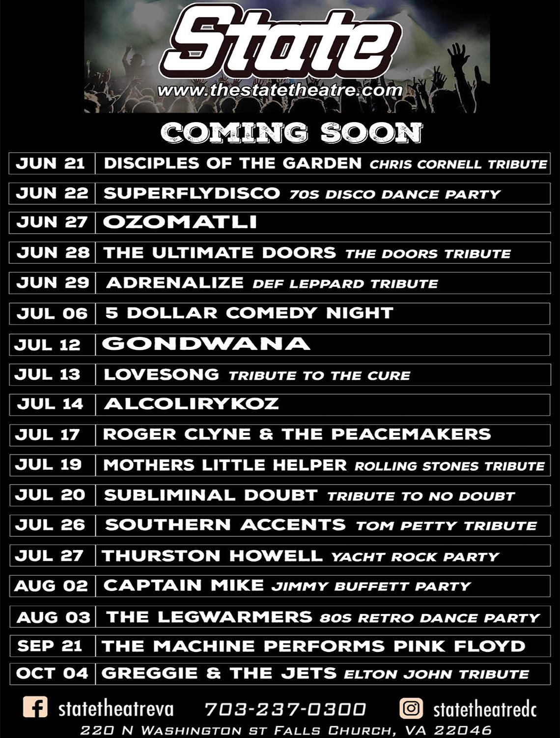 The series starts tonight (June 20) with the Falls Church Concert Band. It is followed by the following: June 27–What Strange Beast (groove rock), July 11–Andrew Acosta Band (classic American roots, folk, rock and roll), July 18 – The Hot Lanes (jazz, big band, Whammy Award winner), July 25–The Big Tow (rock and blues), August 1–Big Howdy (bluegrass, Whammy Award winner), August 8–Kiti Gartner and the Drifting Valentines (rockabilly, country, American).