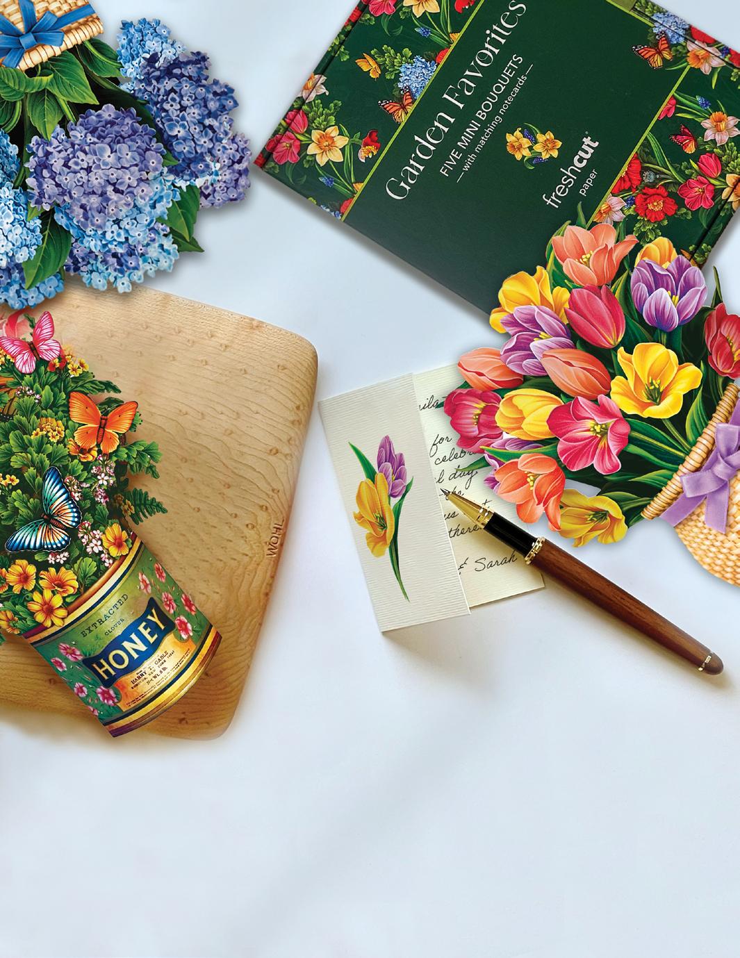 FreshCut Paper’s Year of Flowers Box Set includes 12 mini paper flower bouquets with matching cards, perfect for gifting all year round.