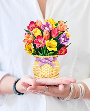 FreshCut Paper’s Festive Tulips feature a dazzling palette of soft lavender, bubbly yellow, lush coral, and glamorous pink. Wow your loved ones with a timeless assortment of cheerful blossoms that can be enjoyed for years to come.
