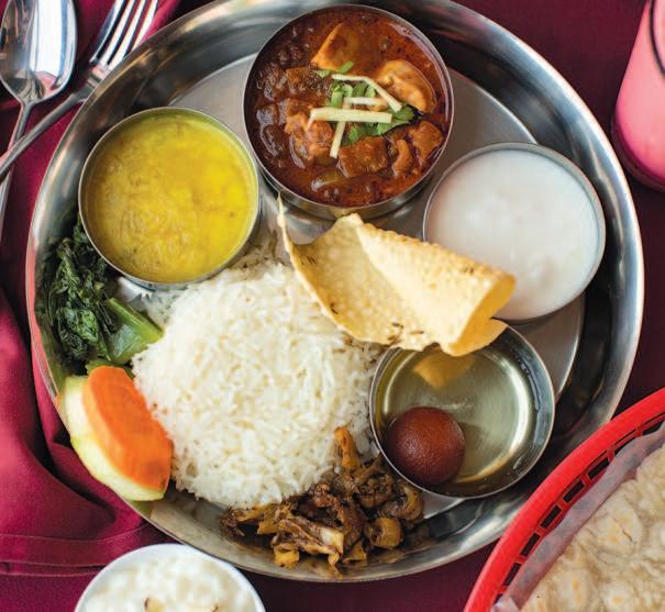 Turmeric’s Delmar Loop location features dishes from every region of India. The menu features a traditional Central- and Southern-style of biryani, a mixed-rice dish. The dosas, a thin and crispy crepe, are from the South. The vegetarian entrées originate from the North and West, like the paneer bu er masala (homemade cheese, tomato, fresh cream and clarified bu er) and banaras bharwan aloo (potatoes, dry fruits, royal shallots, co age cheese and almond sauce).