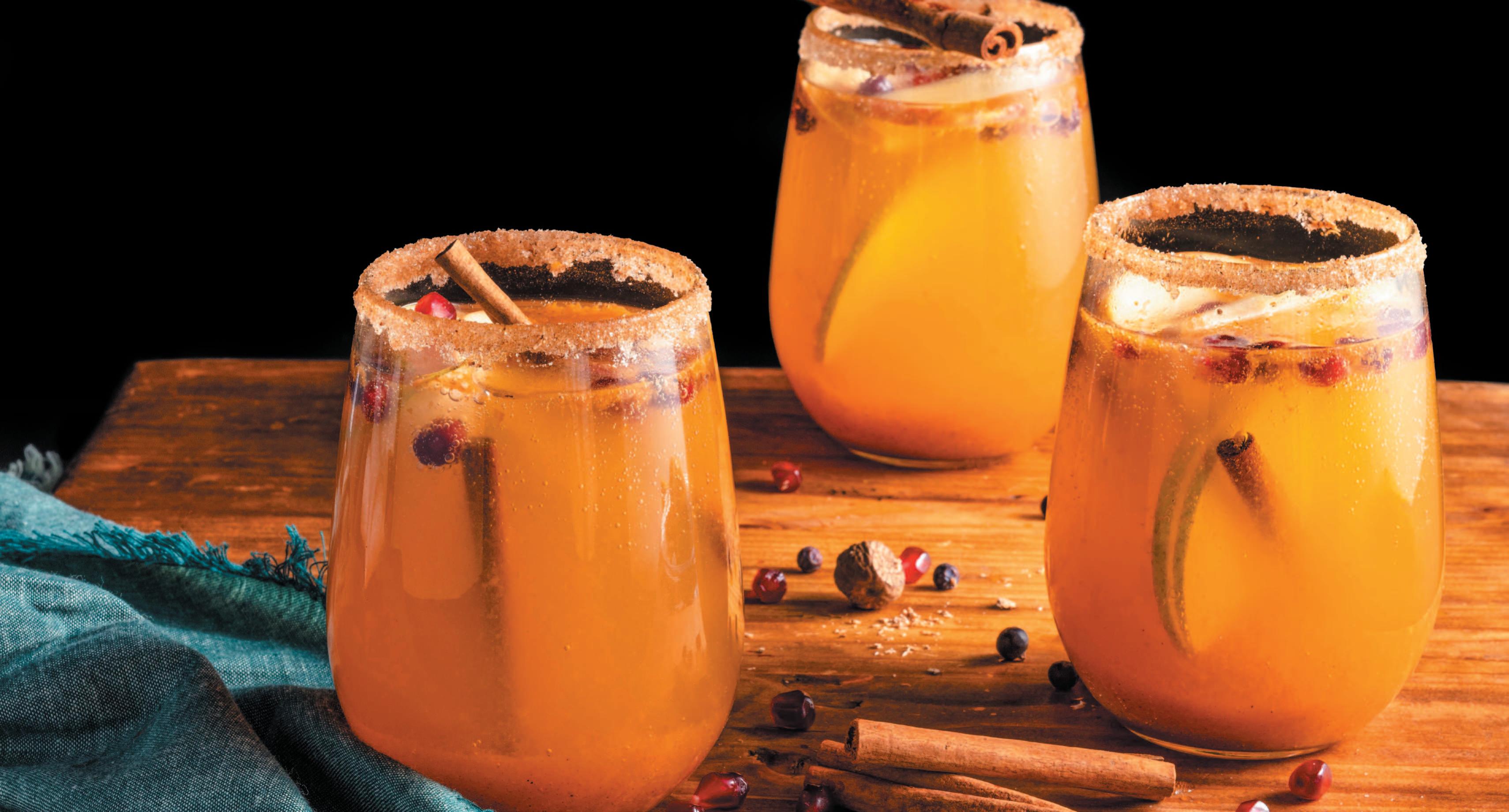 together until combined.Wetrimsofglasseswithanorange wedge,then dipin spice mixture.Garnishglasseswithfreshnutmegshavingsthen ladle punchandfruit slicesintopreparedcups.Serveimmediately. PREPARATION PERFECTPUMPKINPUNCH SERVES6 164ozSchnuckswhitegrapejuice 1cupfreshapplecider ¾ cuppurepumpkinpuree 10WholeAllspice 6cinnamonsticks 1Tbsppumpkinpie spice 1orangequartered 2applessliced CHEERSTOFALLFAVORITES! scan here! OptintoGoodForYouand learnmore atschnucks.com/ goodforyou 1pearsliced ½ cuppomegranate arils 1shavedfreshnutmeg 1½Tbspgranulatedsugar ½Tbsppumpkinpie spice Optional: 1750mlbottlesparkling dryRiesling ½ cupBacardi rum