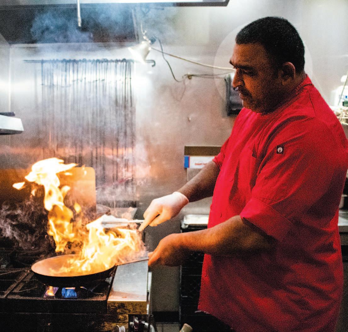 “I can remember going to my grandma’s house and having pot roast on Sunday made with garlic, beef and onions, and then going home to have beef curry that my dad made,” the St. Louisbased chef says. “As a li le kid, it got me thinking about how you can get such drastically different flavors out of the same ingredients. That’s the