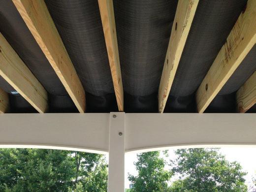 Wrap the support beam in a white or tan vinyl wrap on 3 sides. Standard is straight, added detail is arched - White & Tan in stock.