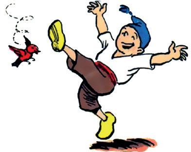 Le petit ange à la trompette, pressé de jouer de son instrument, est enfi n autorisé à sonner la gloire de Dieu et entraîne les Mages vers le lieu de la naissance de Jésus. Une belle reprise de la tradition des anges musiciens.