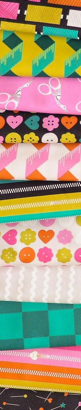 Bits & Bobs is an ode to all the beloved tools and notions within our sewing kit. With a fresh color palette and whimsical illustrations, each design sparks joy and creativity. Perfect for modern quilting, bags, and garments alike, this collection brings personality and fun to every make. Add a cheerful twist to handmade creations Bits & Bobs!
