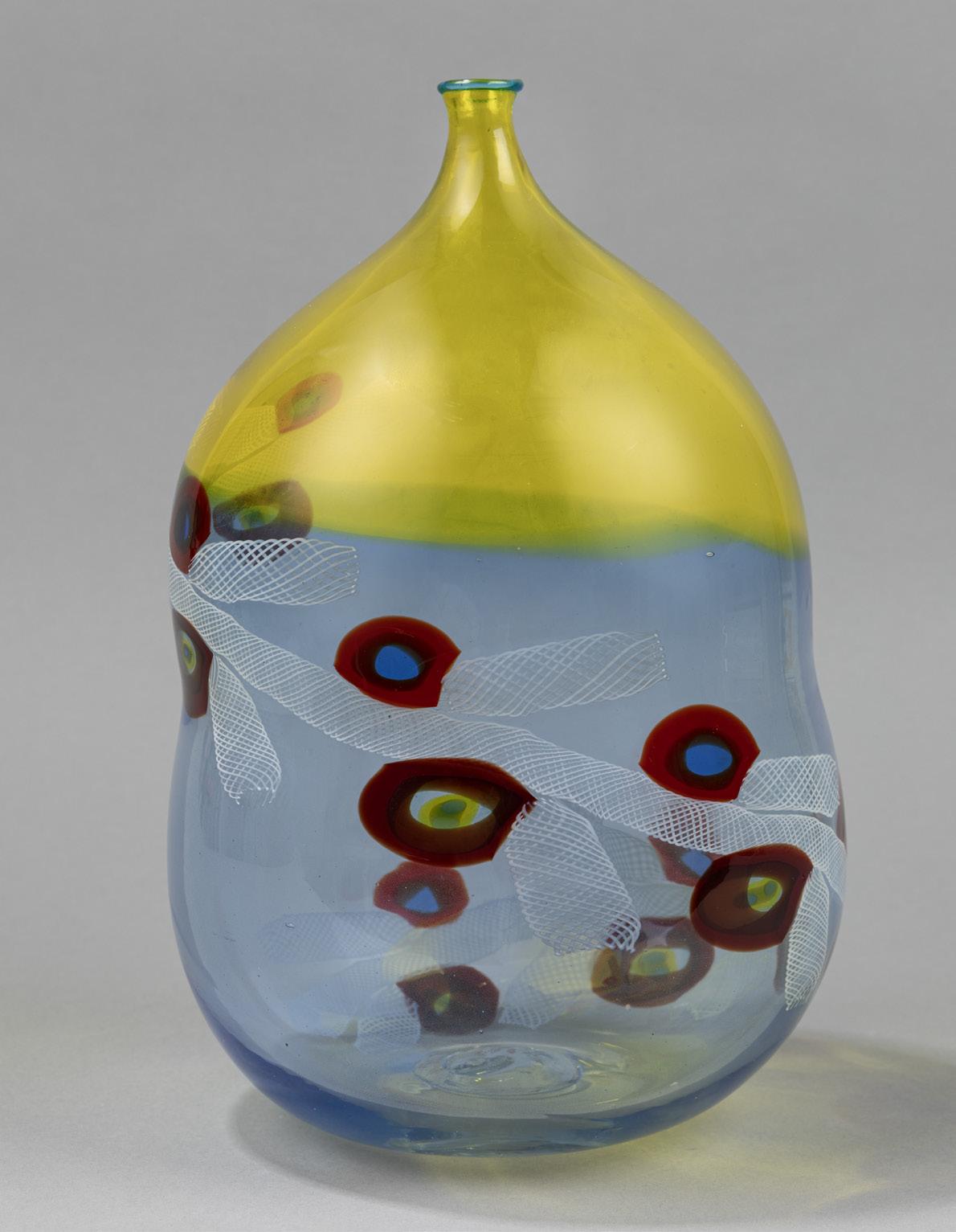 incamiciato glass with canne decoration and golden leaf. Venini Manufacture.