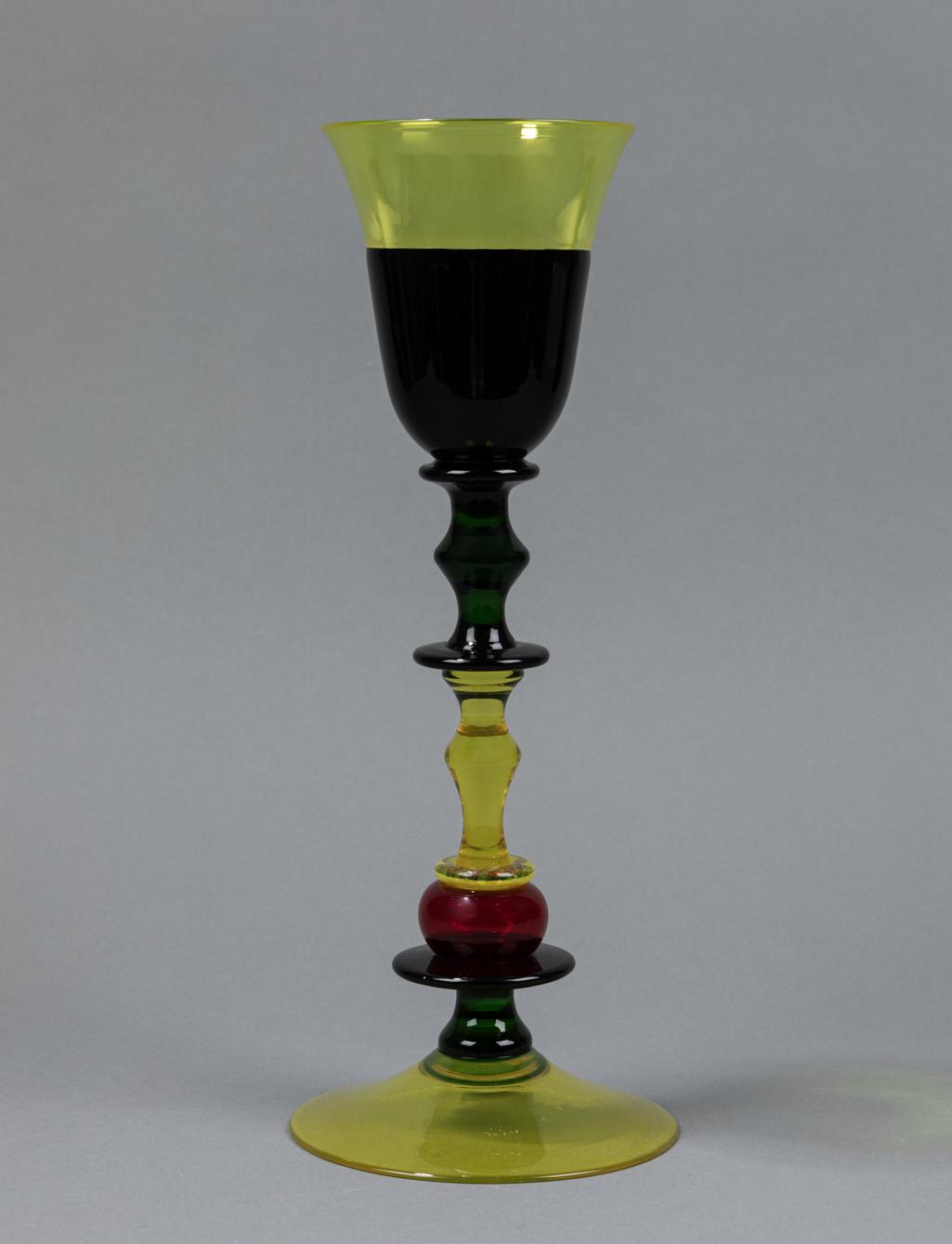 from the serie Pulcini. Blown glass with murrine, brass legs. Vistosi Manufacture.
