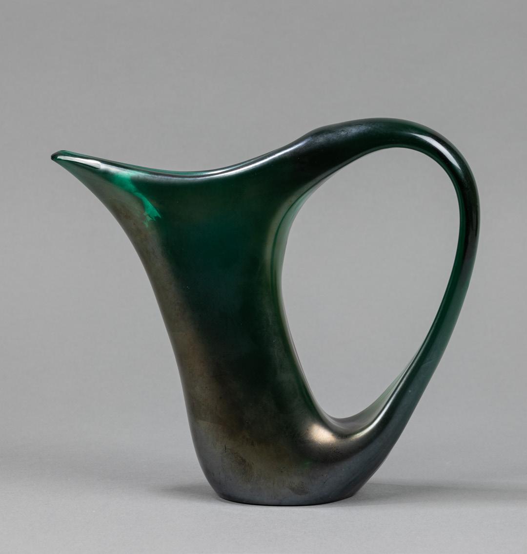 Brocca 1940 ca. in vetro soffiato laguna con avventurina.Firma ad acido Venini Murano Italia. Produzione Venini.