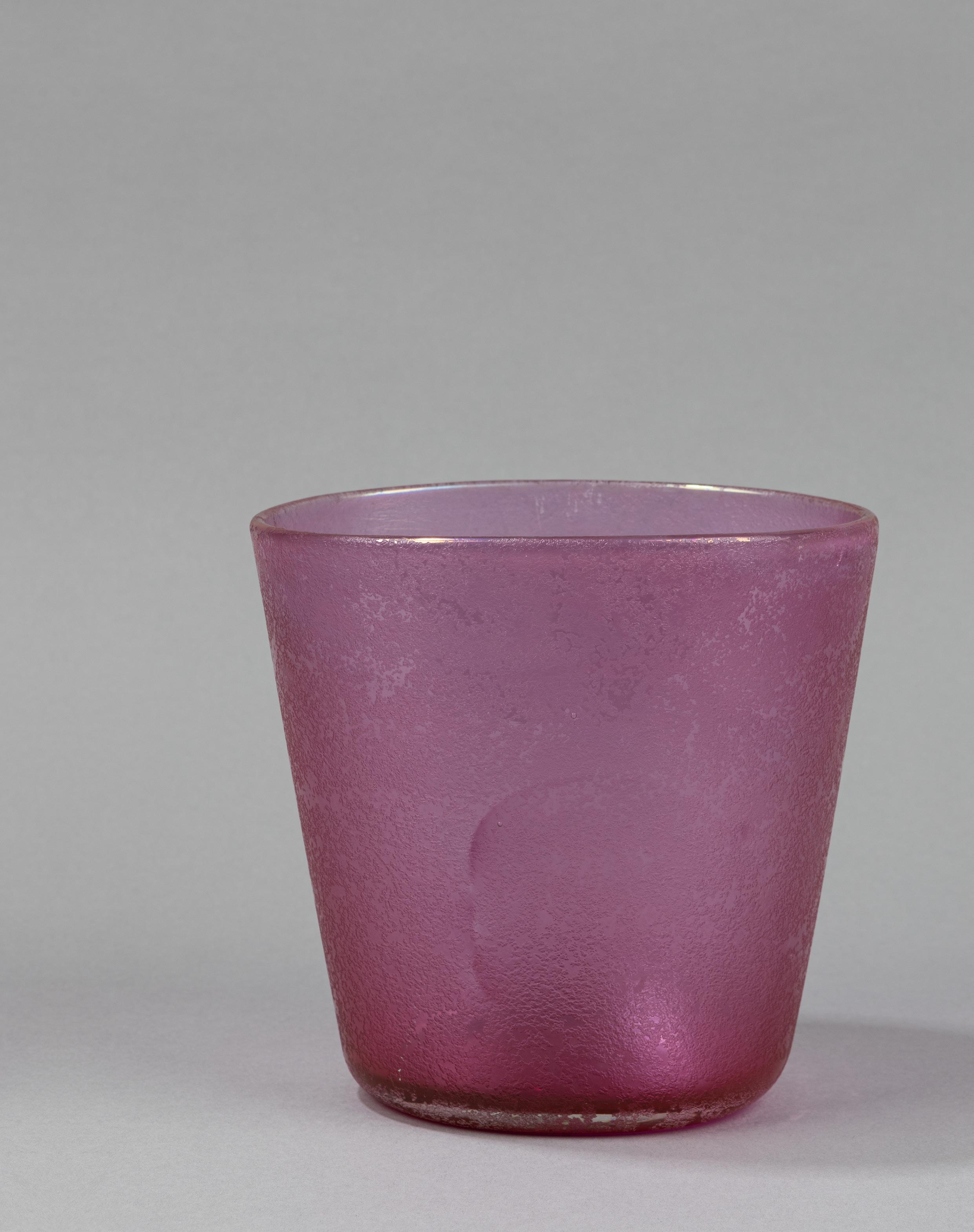 composto da 12 coppe in vetro soffiato con bordo ametista. Produzione Cappellin. Firma ad acido MVM Cappellin.