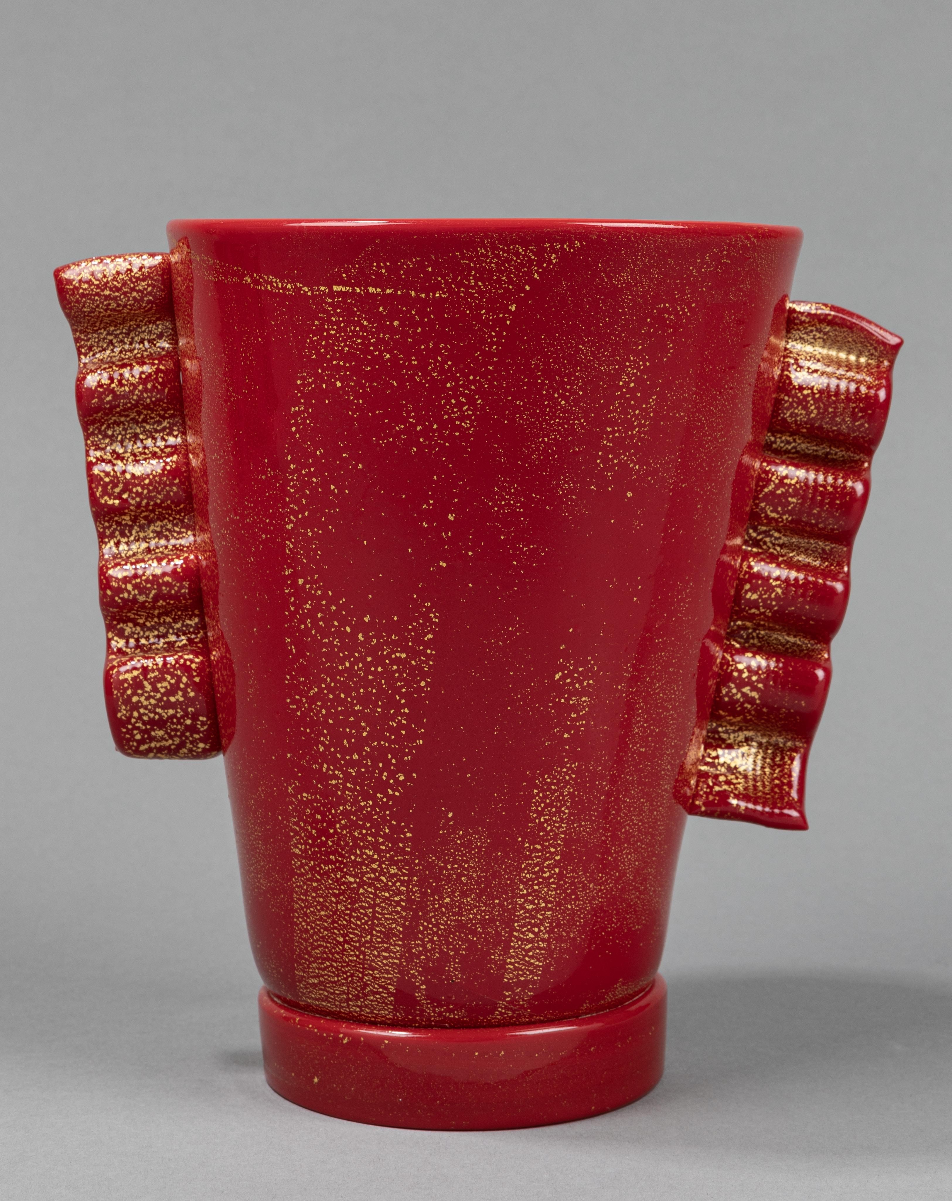 Vaso 1960 ca. della serie Cinesi color rosso. Produzione Venini. Firma a punta Venini Italia.