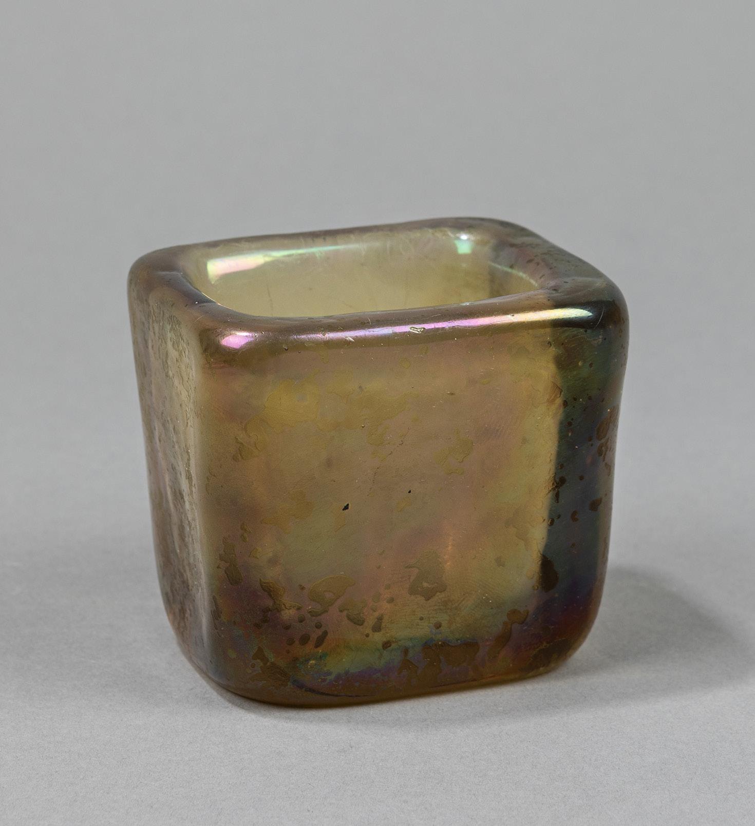 Piccolo vaso 1930 ca. della serie Iridati in vetro sommerso fortemente iridato. Produzione Venini. Firma ad acido Venini Murano.