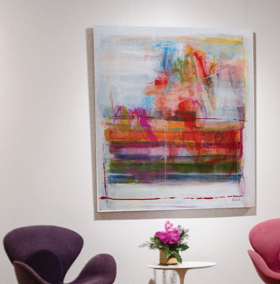 Mait prioritizes fundamental elements such as space, color, and balance in her approach to the canvas. She endeavors to remain as unprepared and unpremeditated as possible at the outset of her creative process to preserve an authentic expression. In these moments of creation, she draws inspiration from a rich internal landscape—a synthesis of visions, dreams, and emotions characterized by spontaneity and executed with meticulous balance. The vibrancy of her color palette resonates with the sense of optimism that she aims to convey through her work. Equally significant is her strategic use of white; the spatial presence it occupies is essential in defining her overall composition.