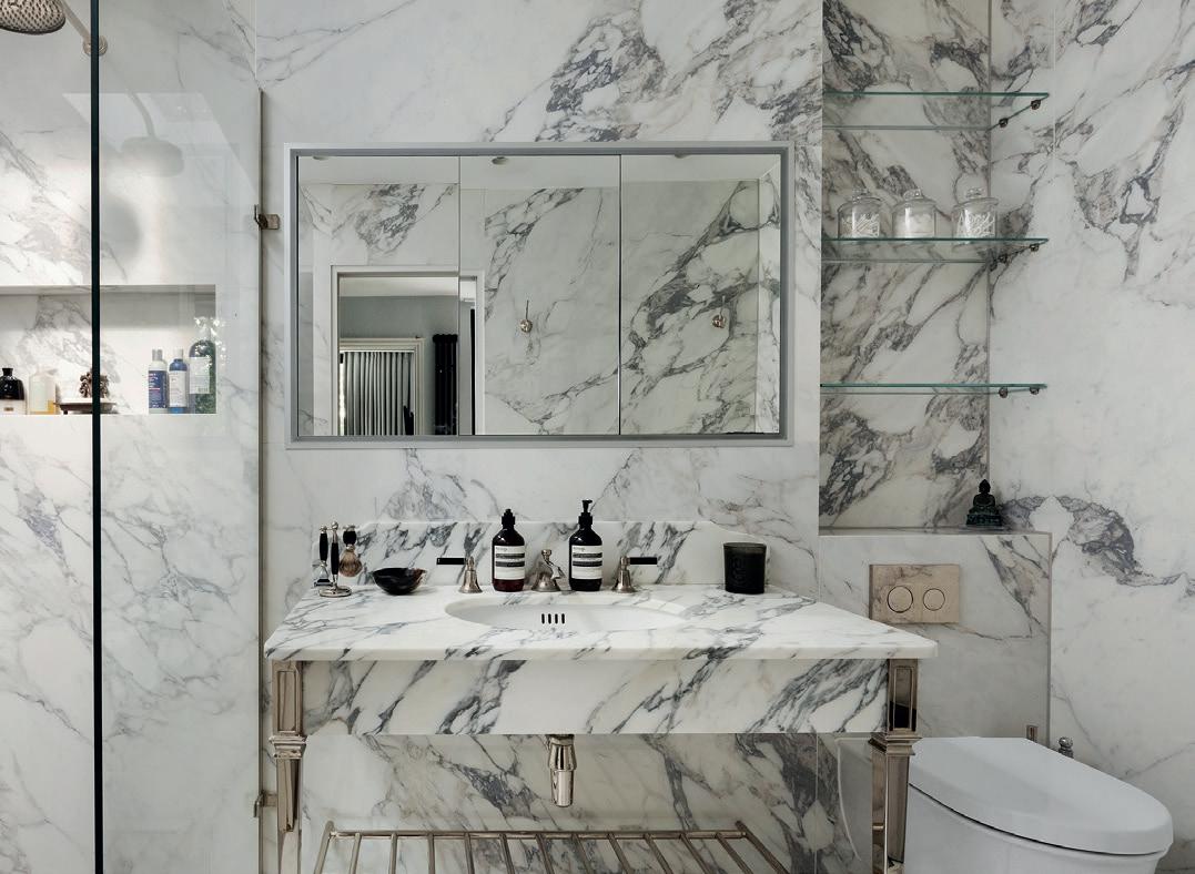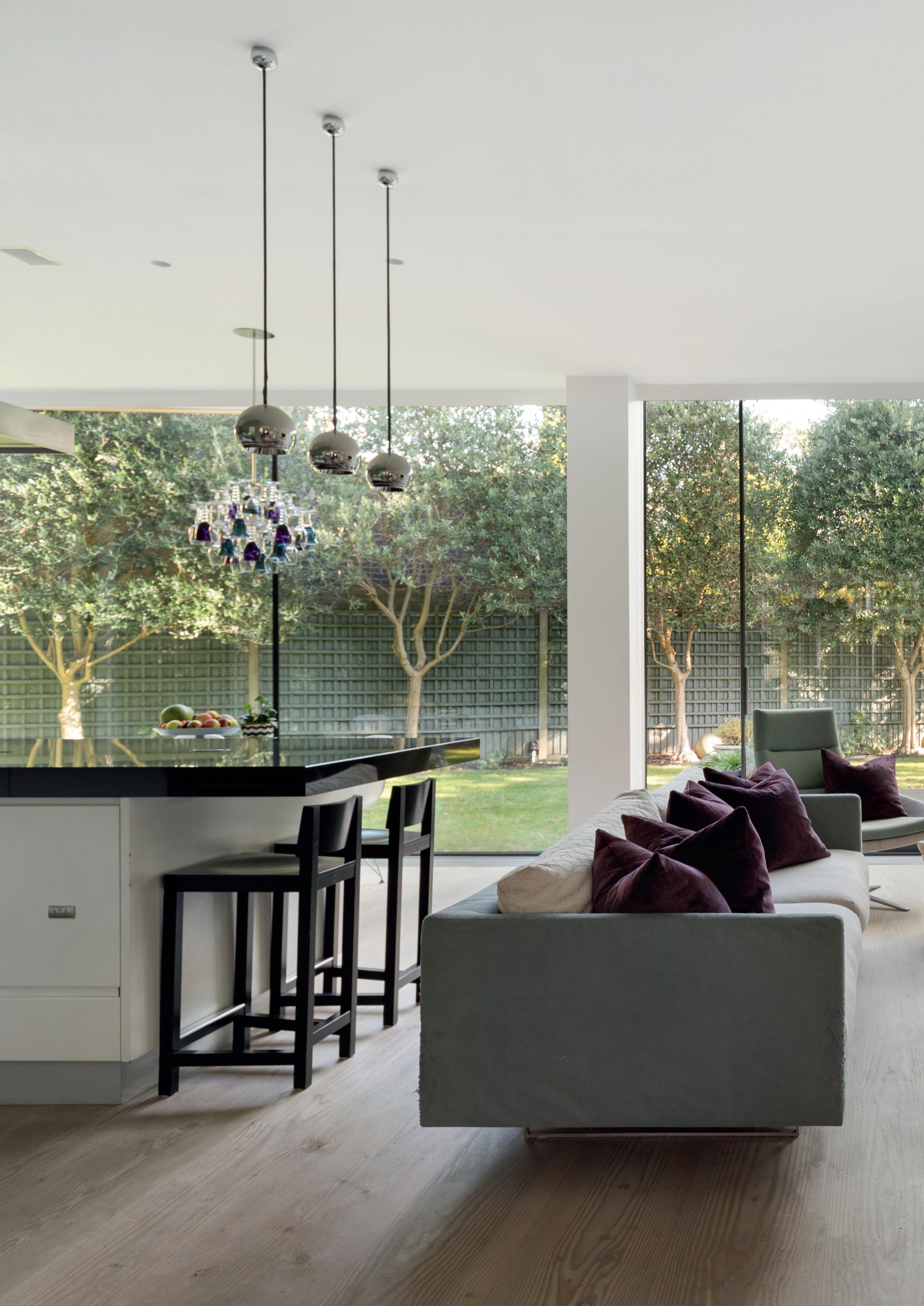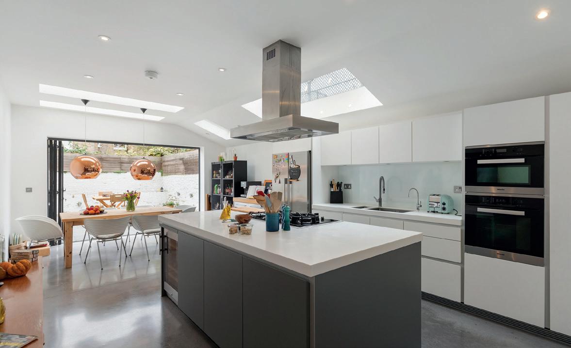 Upon entering the property, you are greeted by a stylish home office and a beautiful, formal sitting room; a space which blends luxury with practicality, with floor-toceiling bi-fold doors flooding the space with natural light, creating a seamless transition to the south-facing patio. Providing a kind of indoor-outdoor living rarely found in the capital, the private garden spaces are one of this home’s most enviable features.