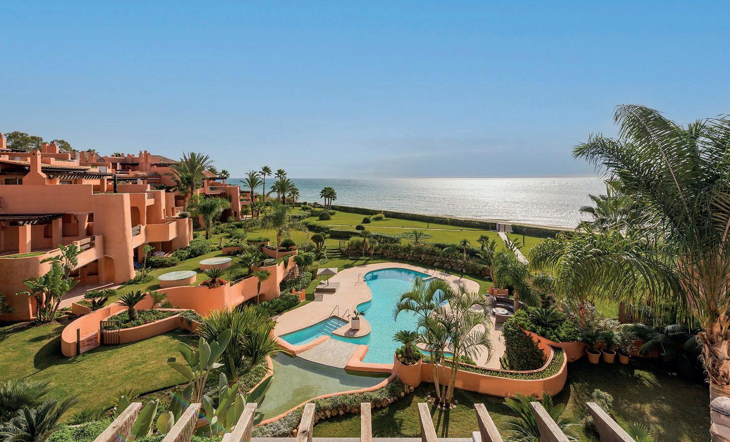 This luxurious beachfront penthouse in Marbella combines the best of villa-like space with the convenience of penthouse living. With a front terrace from the lounge with sea view plus a large expansive entertainment roof terrace with summer kitchen/barbecue, al fresco dining and chill out lounge plus a raised sunbathing platform with Jacuzzi and even a sauna allowing owners to enjoy all-year-round wellness facilities.